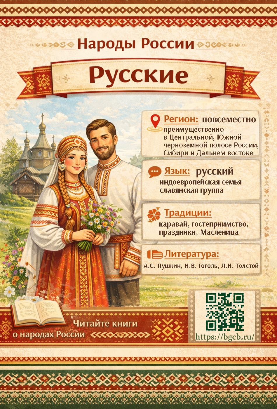 Русские — многоликий народ, который продолжает писать свою великую историю. Хотите узнать больше о народах России и многом другом – приходите в городские библиотеки.