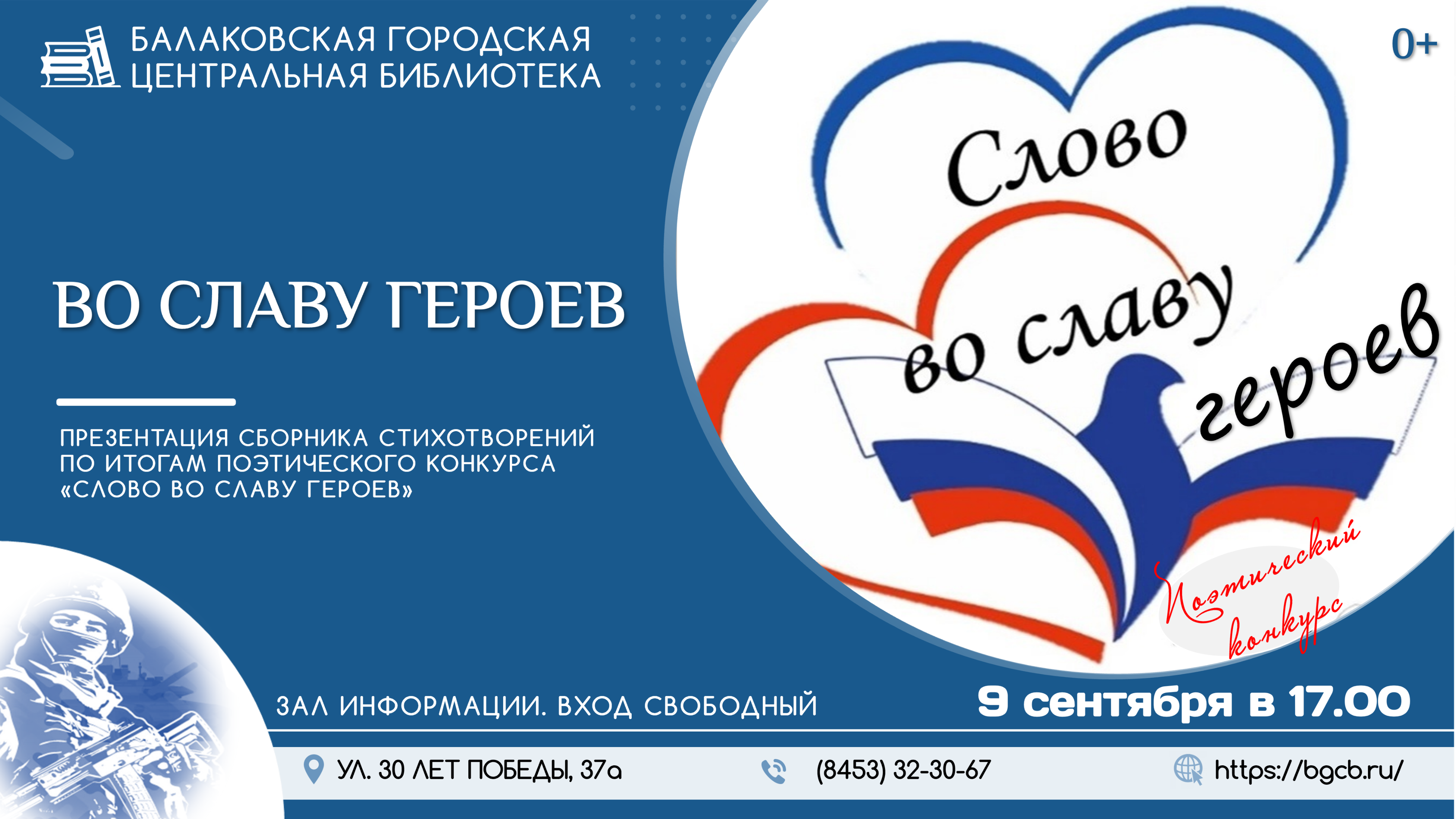 9 сентября в 17:00 в городской центральной библиотеке состоится презентация сборника стихотворений «Во славу героев».