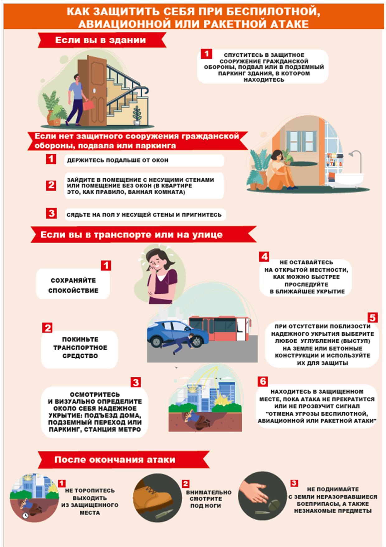 Главным управлением Министерства Российской Федерации по делам гражданской обороны, чрезвычайным ситуациям и ликвидации последствий стихийных бедствий по Саратовской области разработаны памятки по действиям при возникновении опасности беспилотной, авиационной или ракетной атаки, катастрофического затопления, а также радиационного (химического) заражения.
