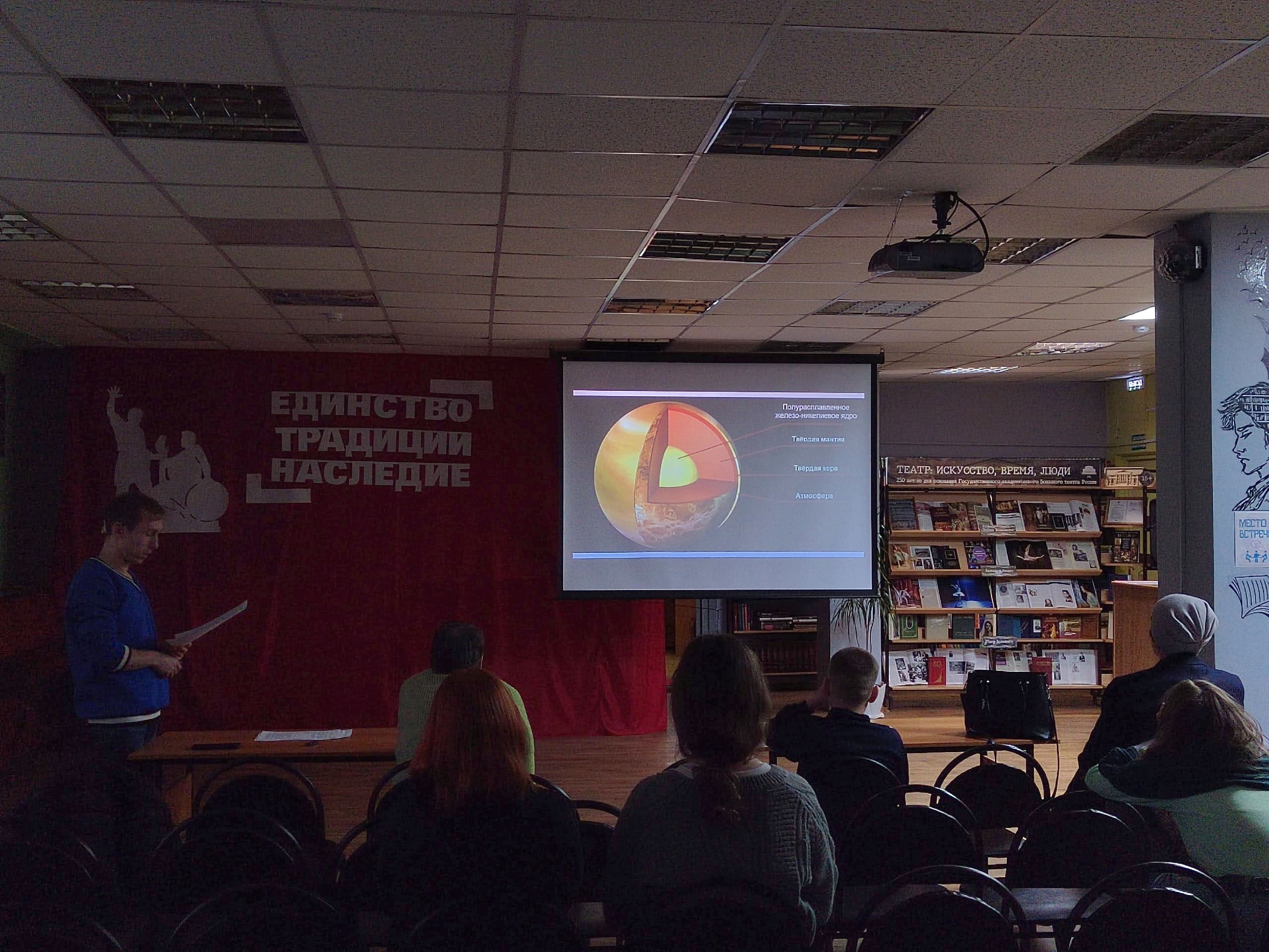 12 марта в зале информации городской центральной библиотеки прошла лекция по любительской астрономии. На ней гости узнали подробности о ближайших к Солнцу планетах – Венере и Меркурии. Лектор Александр рассказал, откуда на Меркурии лед, что такое орбита планеты и ее параметры, почему Венера является самым горячим объектом солнечной системы, а также о том, какие аппараты посетили эти планеты.