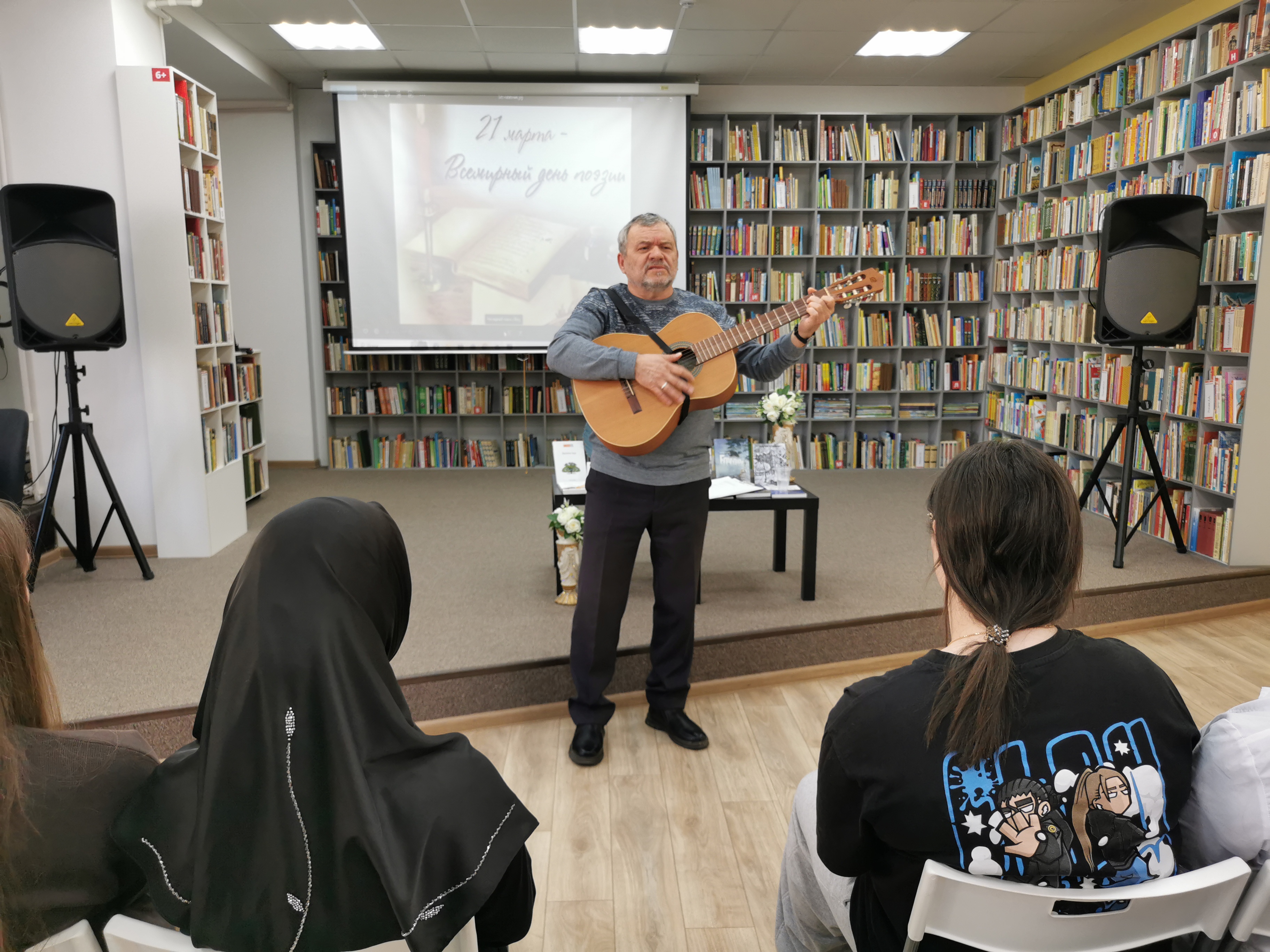 Ко Всемирному дню поэзии в библиотеке прошла замечательная встреча «И вновь душа поэзией полна». Студенты медицинского колледжа с большим интересом слушали стихи, написанные талантливыми поэтами – Юрием Каргиным, Татьяной Егрецкой и Галиной Быстровой. Особое настроение мероприятию придали музыкальные произведения, созданные на стихи этих авторов. Встреча получилась тёплой и вдохновляющей, позволив молодёжи прикоснуться к миру поэзии и почувство