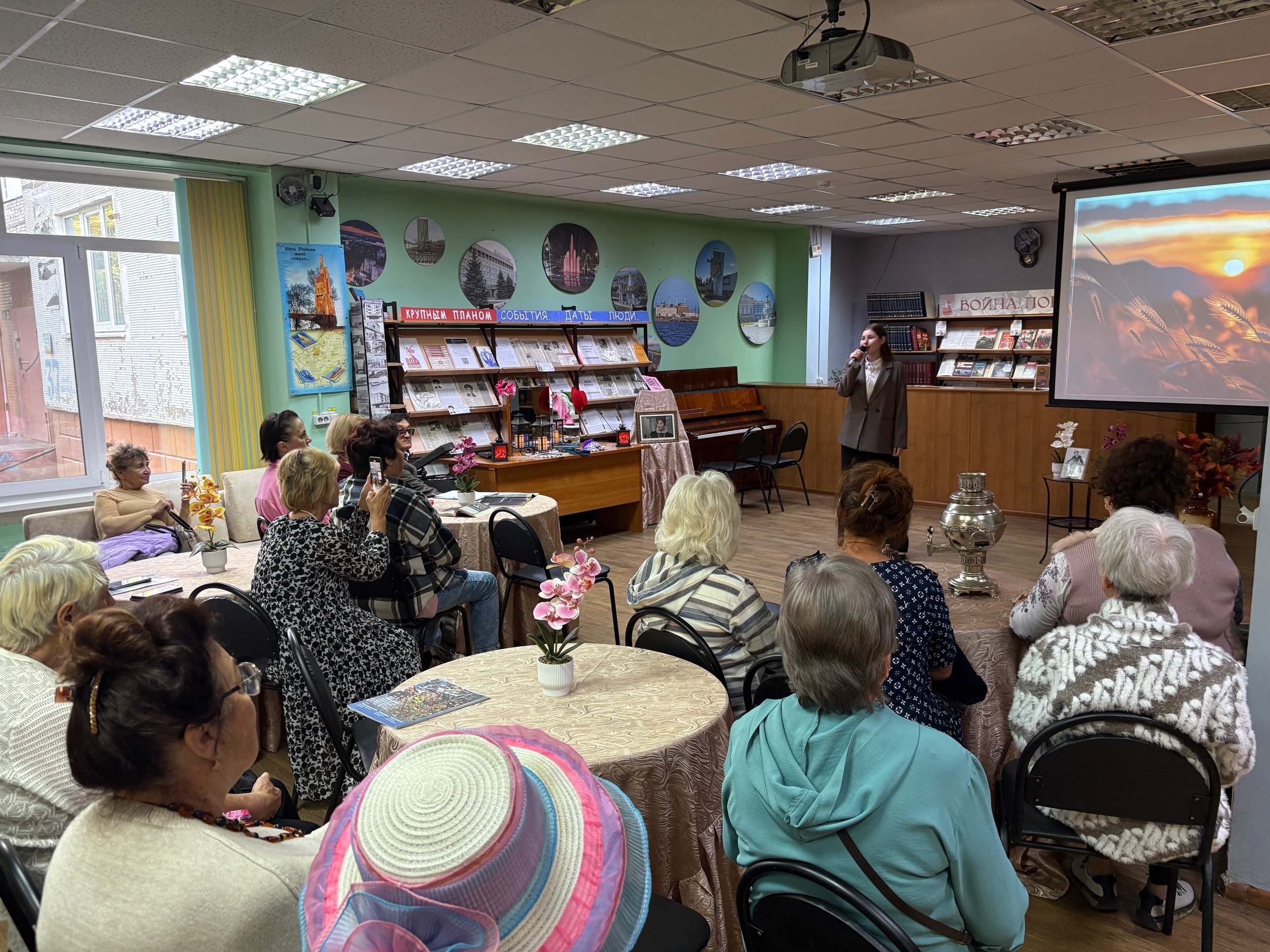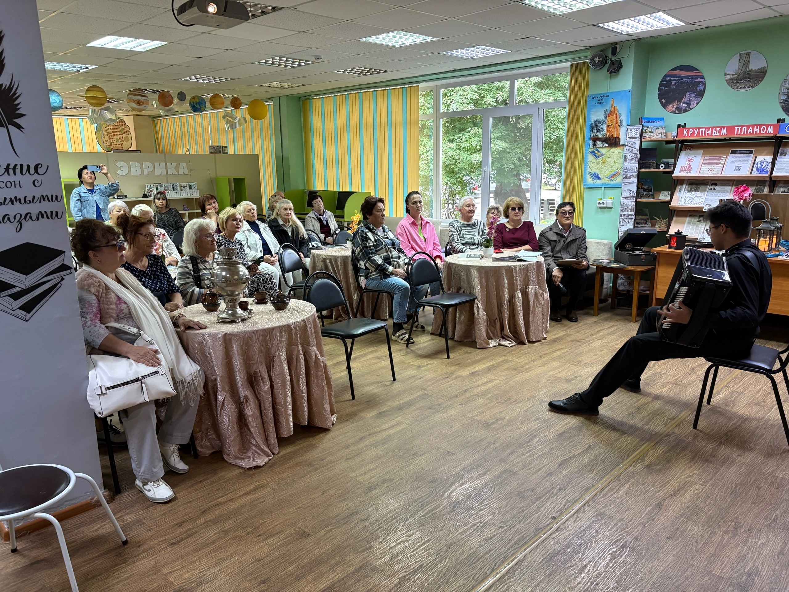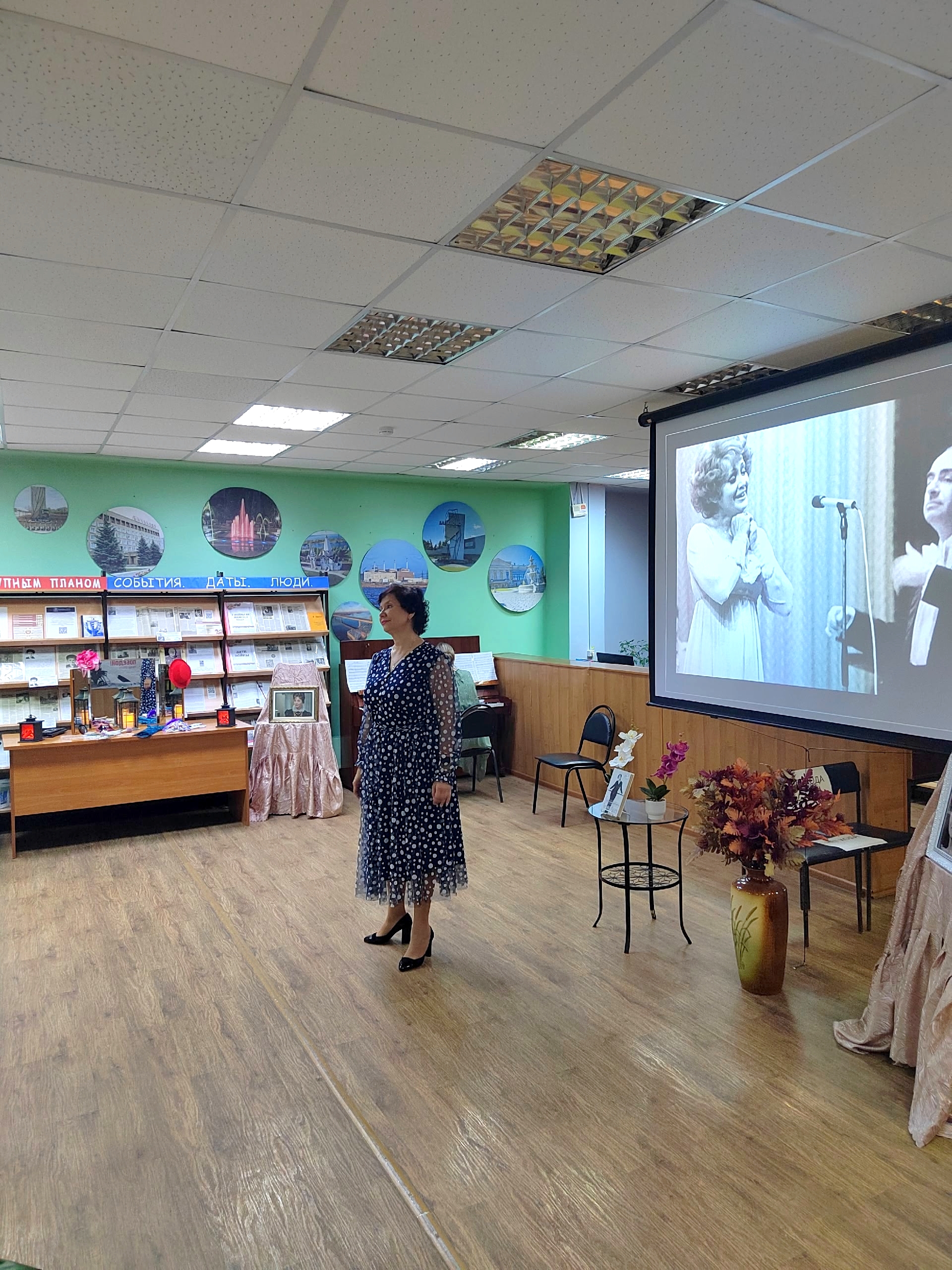 18 сентября в зале городской центральной библиотеки состоялся вечер, посвященный творчеству королевы оперетты - Татьяны Ивановны Шмыги. В своей неповторимой манере автор и ведущий программы Марат Багров рассказал об актрисе, дополняя повествование демонстрацией зрителям элементов инсталляции. Держа в руках каждый предмет, Марат Владимирович поведал о разных страницах истории жизни Татьяны Ивановны, о чертах характера, быте и традициях семьи. Каждый элемент украшения зала для этого вечера был подобран с особой деликатностью. Это и дамский туалетный столик, элементы сценических костюмов, самовар, говорящий о гостеприимстве семьи героини, прекрасные орхидеи – символ совершенства и красоты. В течение вечера с экрана звучали арии из оперетт, мастерски исполненные актрисой. Зрители и сами будто поговорили с Татьяной Ивановной через экран – в фрагментах интервью героиня рассказала об интересных случаях на сцене и вне ее, о семье, о быте. Полному погружению гостей в мир музыки способствовало разнообразие номеров, подготовленных артистами. Педагоги Детской школы искусств №2 им. И. Я. Паницкого Ольга Константинова и Ирина Рябчикова исполнили классические фортепианные произведения. По-настоящему трогательными были выступления учащихся школы искусств. Композицию на баяне исполнил Руслан Васильев (преподаватель Т.Н. Варгина), на гитаре – Тимур Васильев (преподаватель Н.А. Кудашова), на фортепиано – Алена Хохлова (преподаватель Л.А. Шурыгина). Красивую песню исполнила Ангелина Варданян (преподаватель И.Г. Ватченко). Неожиданным подарком для слушателей стал номер педагога Калины Забегаевой и директора школы Валентины Горбуновой – «Вальс», исполненный на флейте под фортепиано. Задор в музыкальную программу внес номер Александра Ильичева с песней о любви. Красивым завершением музыкальной части мероприятия стала партия Татьяны Шмыги из мюзикла «Моя прекрасная леди», бережно воплощенная педагогами Детской школы искусств №4 Натальей Шалаевой и Юлией Никитиной. По традиции, стихотворение, посвященное актрисе, прочла поэт Галина Шаповалова. По окончании вечера гости признались, что чувствуют, будто Татьяна Ивановна также присутствует в зале. Желающие сделали памятные фото на фоне элементов инсталляции. Осенний вечер получился уютным и согревающим. Благодарим Марата Владимировича, артистов, наших гостей и ждем новых встреч в рамках проекта «Имена на все времена»!