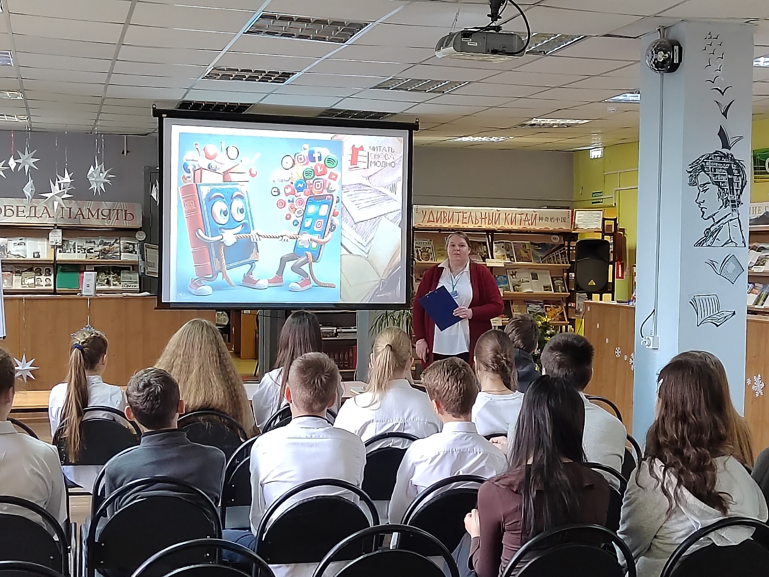 Как найти нужную книгу в многотысячном фонде самостоятельно, прочитать и вернуть ее в библиотеку в исходном состоянии, об этом и не только узнали участники библиотечного урока «Книга и библиотека: страницы истории», ребята 7 класса Лицея №1. В современной цифровой эпохе особенно важно сохранять и развивать культуру чтения. Ребята вспомнили правила обращения с книгой, определили, как отличить библиотечную книгу от личной, какими разными могут быть книги как по содержанию, так и по форме и размерам, самостоятельно нашли в фонде заданную книгу. Удивительные факты, представленные в презентации, рассказали ребятам о почти пятитысячелетней истории библиотек, а познавательные ролики позволили познакомиться с старейшими и красивейшими библиотеками мира. Сочетание теории и практики позволило учащимся не только получить знания, но и применить их на деле. Подобные занятия способствуют воспитанию грамотного читателя, способного ориентироваться в информационном пространстве и ценить книгу как источник знаний.