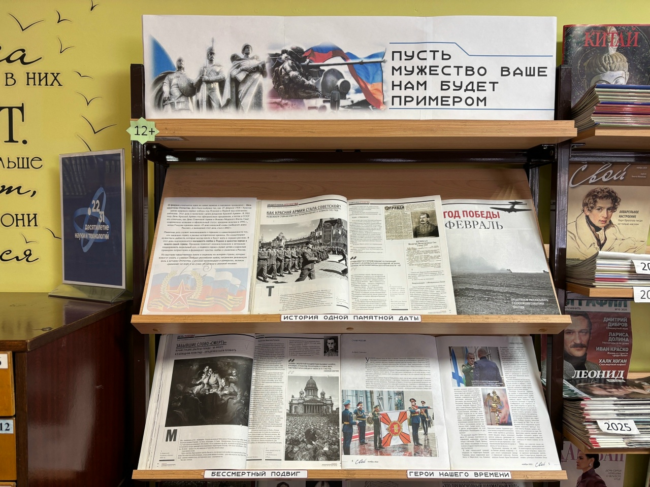 Ко Дню защитника Отечества городская центральная библиотека предлагает всем желающим посетить с 9 по 20 февраля выставку «Пусть мужество ваше нам будет примером», расположенную в зале информации.