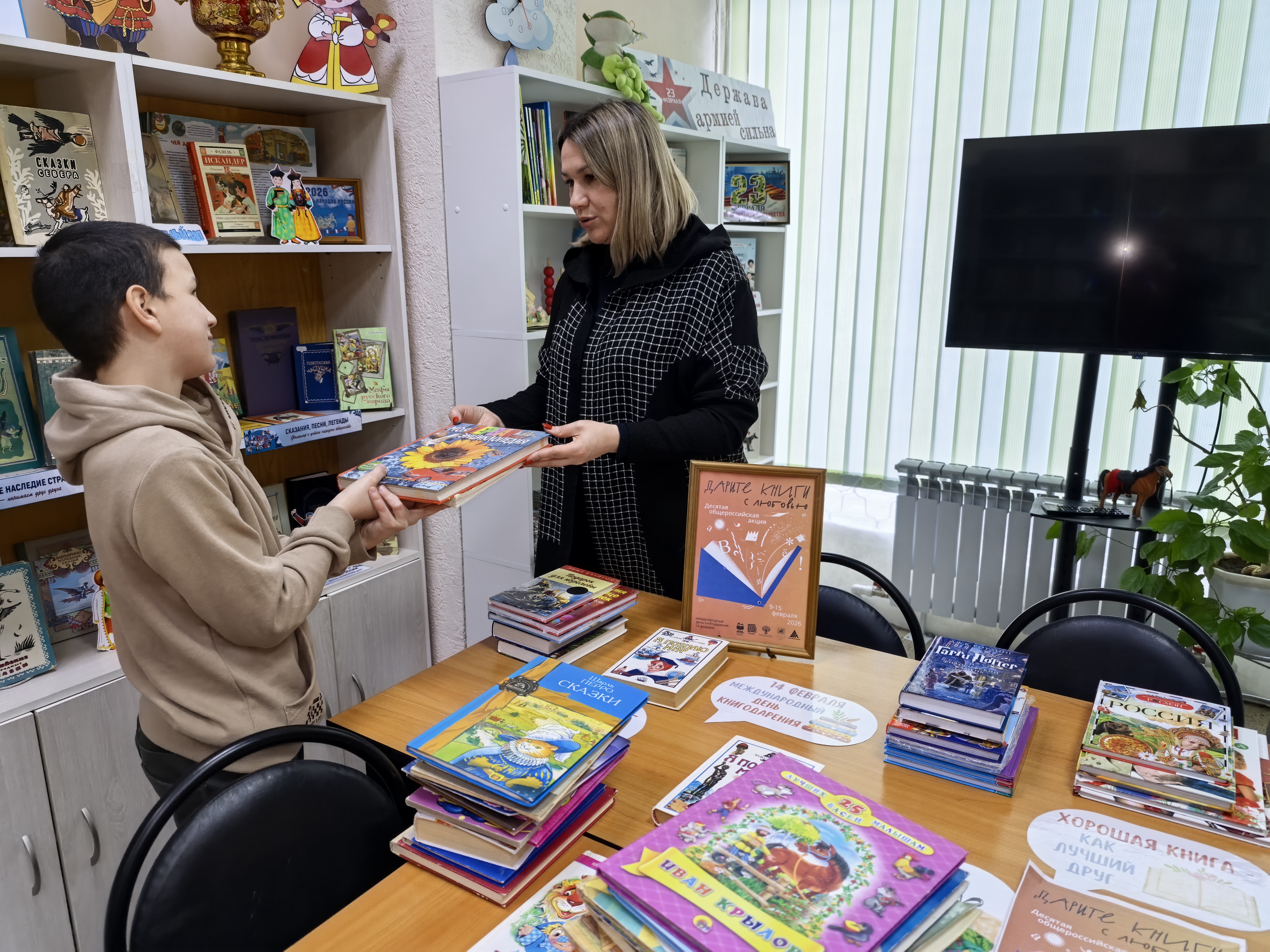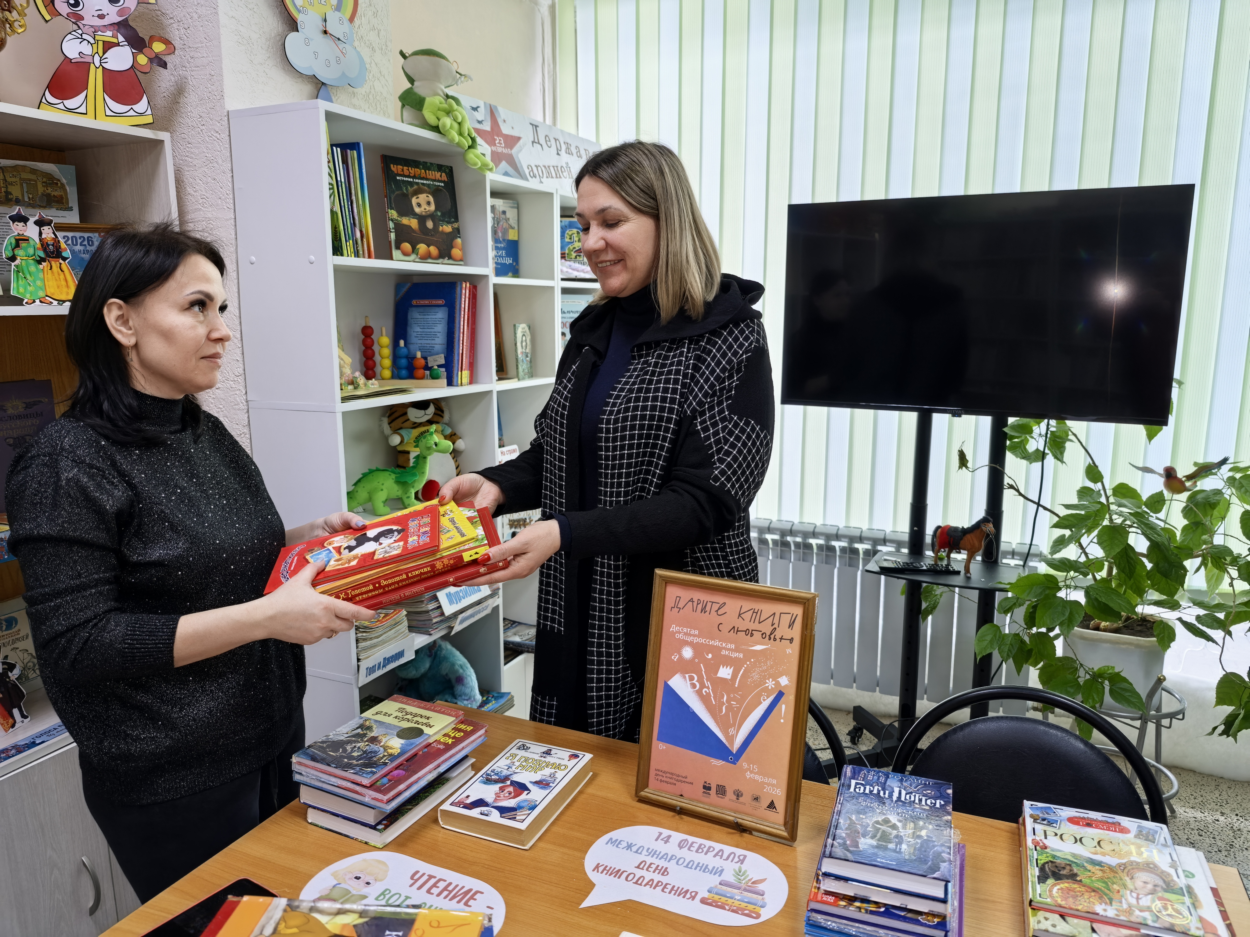 С 9 по 15 февраля 2026 года прошла Десятая общероссийская акция «Дарите книги с любовью», приуроченная к Международному дню дарения книг. Библиотеки города уже не первый год принимают в ней участие. В течение недели библиотекари принимали подарки в виде книг от наших читателей. По итогам акции фонды библиотек пополнились 324 новыми книгами. Из них 24 книги были переданы в школьные библиотеки города, 3 книги в Центр ППМС, 2 книги в филиал Областной библиотеки для слепых. Мы искренне благодарим всех, кто поддержал акцию и внес вклад в развитие нашего книжного фонда! Спасибо Вам!