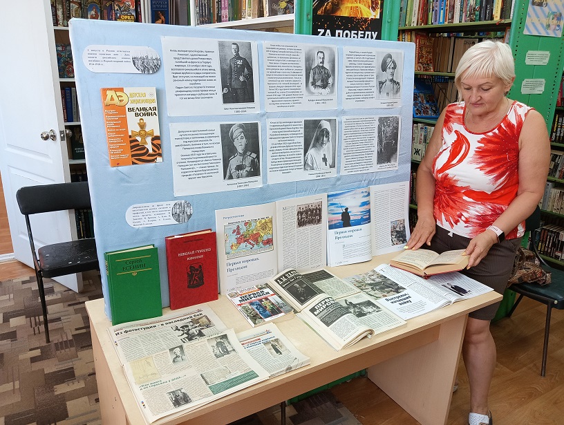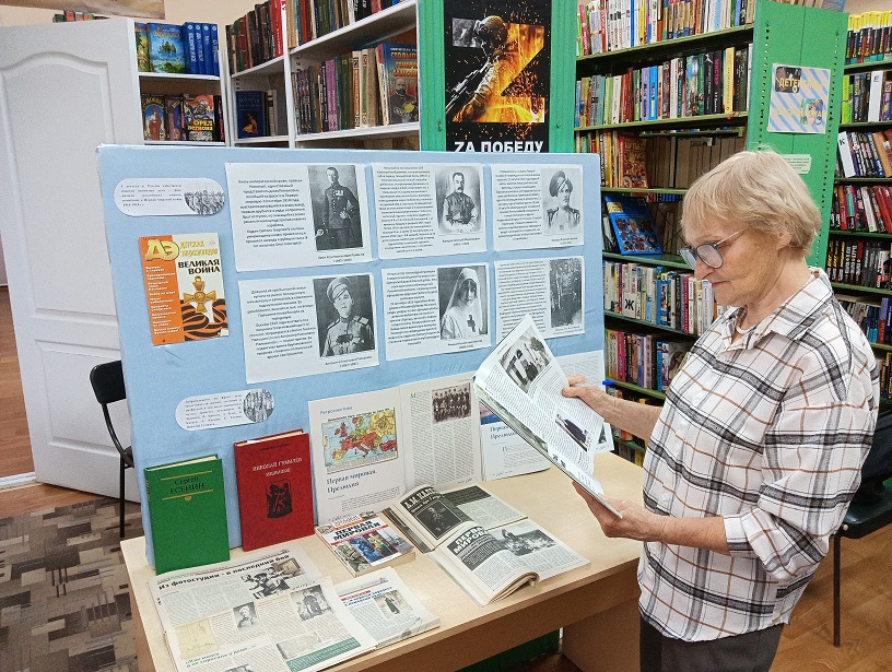 Из беседы-обзора «Россия в Первой мировой войне» читатели узнали о причинах и героях войны, о подвигах Олега Романова, Антонины Пальшиной, Кузьмы Крючкова и других воинах, проявивших мужество и отвагу. Беседа-обзор была дополнена стихами участников Первой мировой войны – знаменитых поэтов Сергея Есенина и Николая Гумилева. Каждый желающий смог ознакомиться с документальной литературой из книжного фонда библиотеки по данной теме.