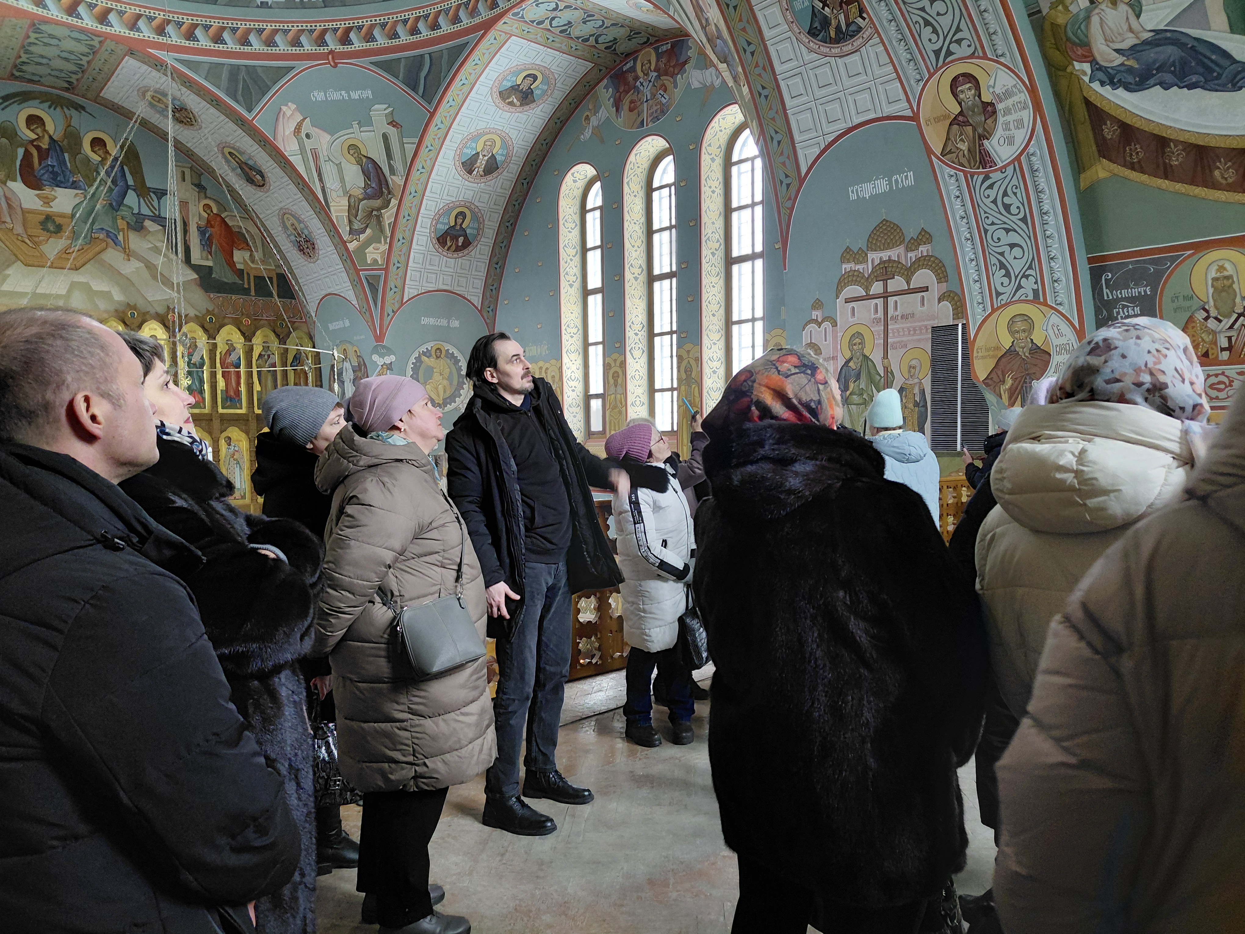 Сотрудники городских библиотек побывали на экскурсии в Свято‑Троицком кафедральном соборе Балаково — и увидели храм в совершенно новом свете. Провел экскурсию Павел Константинович Соловьёв, заместитель руководителя паломнической службы Балаковской епархии по экскурсионно‑краеведческой работе, кандидат исторических наук. С первых минут стало понятно: роспись собора — не просто украшение, а цельный рассказ о вере и истории Церкви. Павел Константинович подробно остановился на Центральной теме росписи - единстве Церкви небесной и земной. Поскольку собор освящён в честь Святой Троицы, ключевым сюжетом стало Сошествие Святого Духа на апостолов. Этот образ задаёт тон всему пространству храма. Павел Соловьёв рассказал о святых, в том числе о сонме Саратовских святых; особое место среди них занимает святой праведный Александр Чагринский, в церковной традиции также именуемый Александром Балаковским. Слушая Павла Константиновича, сотрудники библиотек по‑новому увидели интерьеры собора: теперь каждый элемент росписи воспринимается как часть духовного повествования, придавая храму — и без того архитектурной жемчужине Балаково — особую глубину. Павел Константинович рассказал, что роспись выполнила московская артель мастеров «Радость», имеющая опыт работ в храмах России и за рубежом. Проект при поддержке компании «ФосАгро» длился с весны 2025 по январь 2026 года. Экскурсия показала: роспись вернула собору выразительность — теперь в образах можно «прочитать» евангельские сюжеты и ощутить связь времён. От лица всех участников экскурсии выражаем искреннюю благодарность Павлу Константиновичу Соловьёву за глубокий, вдохновляющий рассказ. Благодаря его эрудиции и тёплому, доверительному тону каждый из нас смог по‑новому увидеть знакомое пространство собора, ощутить живую связь церковного искусства с духовной традицией. Спасибо за то, что сделали эту встречу не просто экскурсией, а настоящим путешествием в сердце храма!