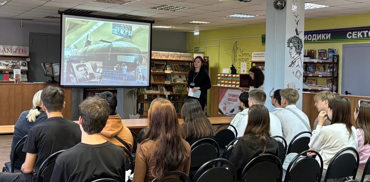 В читальном зале центральной библиотеки состоялась памятная встреча, посвящённая выдающемуся земляку, учёному и конструктору Владимиру Николаевичу Перегудову. Владимир Николаевич — легендарный советский инженер, кораблестроитель и главный конструктор первых отечественных атомных подводных лодок. Его имя навсегда вписано в историю отечественного судостроения. В ходе мероприятия студенты познакомились с увлекательной биографией учёного. Особое внимание было уделено его вкладу в развитие отечественного подводного флота. Кульминацией встречи стал показ документального фильма, подготовленного редакцией телеканала Совета Федерации. Картина включает уникальные свидетельства участников строительства первого атомного подводного корабля, редкие архивные материалы и личные воспоминания детей Владимира Перегудова. Мероприятие позволило молодому поколению узнать о жизни и достижениях выдающегося конструктора, чей труд стал важной вехой в истории отечественного кораблестроения.