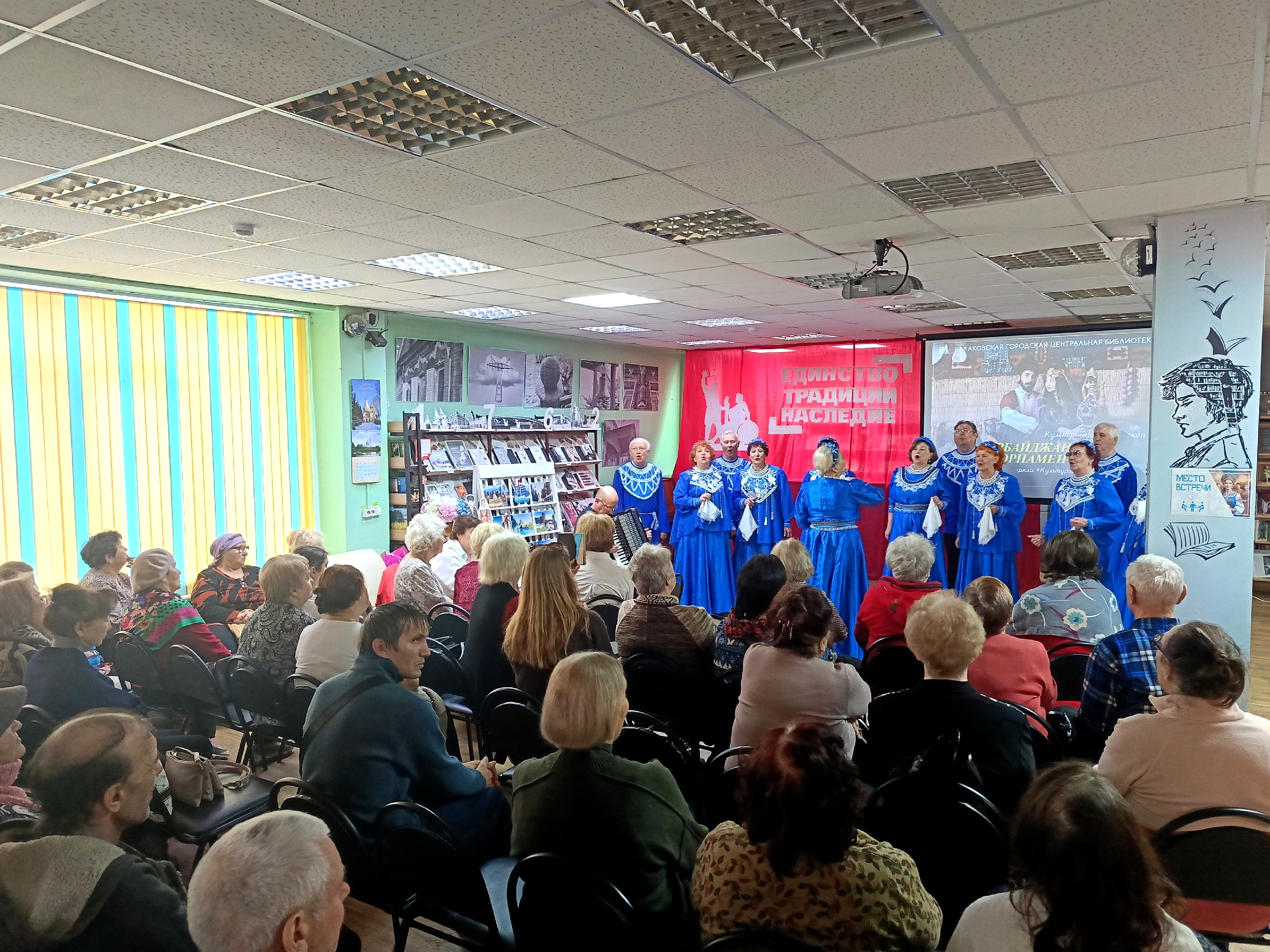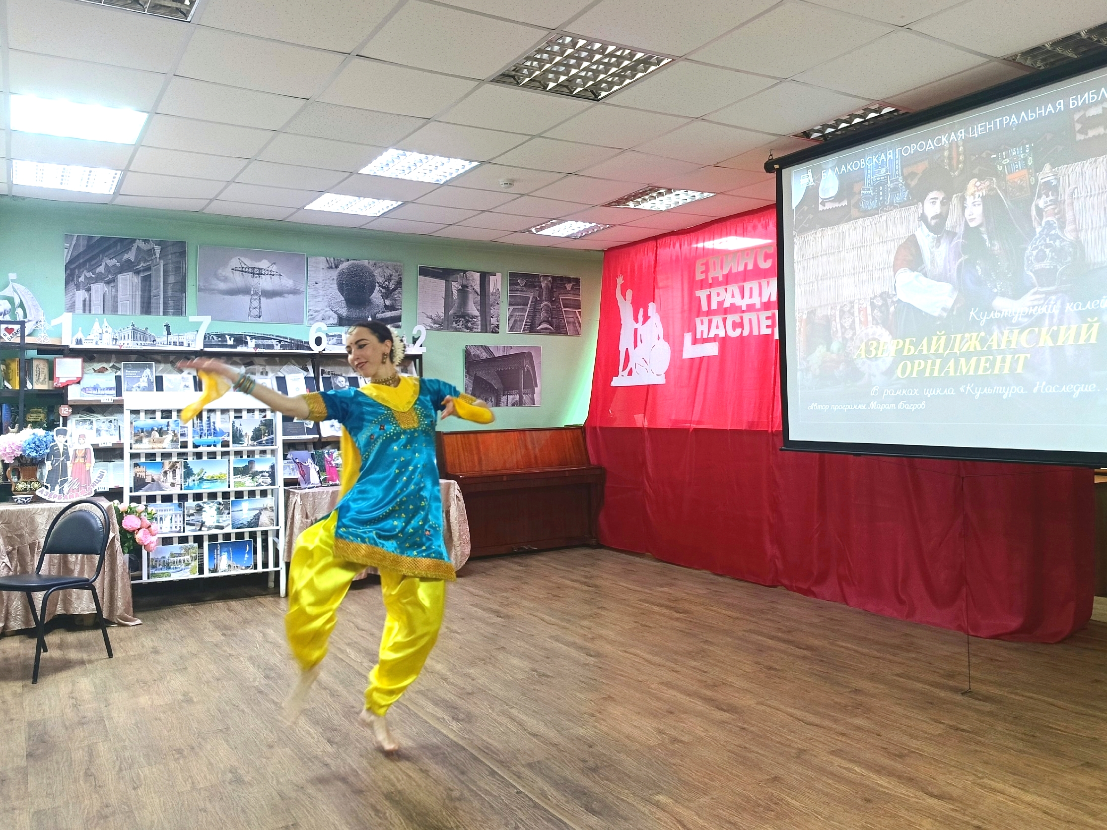 18 марта в городской центральной библиотеке состоялся второй выпуск цикла «Культура. Наследие. Личности», посвященный Стране огней – Азербайджану. Торжественно и красиво открыл мероприятие хор Совета ветеранов Балаковской АЭС «Энергия» (руководитель Г. К. Салтыкова, концертмейстер В.Г. Колобов), подарив зрителю прекрасные песни о России. Ведущие рассказали о культурных особенностях, традициях и ценностях народа Азербайджана. Участие в программе приняли любители поэзии города Балаково. Людмила Скорикова, Светлана Архипова, Зинаида Сорокопуд, Наталья Российская осветили знаковые достопримечательности Азербайджана и прочли прекрасные стихотворения поэта Вячеслава Зайцева, чья жизнь и творчество связаны с этой страной. На мероприятии не могли не прозвучать имена знаменитых голосов Азербайджана – Полада Бюльбюль оглы и Муслима Магомаева. На экране зрители увидели видеозаписи песен в исполнении артистов. Порадовали гостей и эпизоды культовых фильмов, съемки которых проходили на улицах старого Баку. Мероприятие стало настоящим праздником единства. Танцевальный коллектив «Разноцветная планета» (руководитель Жидкова И.Ф.) детского клуба «Росток» «зажег» зал русской плясовой, белорусским, казачьим, молдаванским танцами. Словно сложные узоры азербайджанского орнамента на сцене гармонично переплелись культуры разных народов России. Особый восторг зрителей вызвал яркий танец самых юных участниц коллектива. Многовековые культурные взаимоотношения связывают Азербайджан с Индией. Магией индийского искусства, пластикой, грацией заворожили гостей солистки «Народного коллектива» ансамбля индийского танца «Санджукта» Вера Цветкова и София Распопова. Мероприятие охватило самые разные культурные аспекты жизни народа Азербайджана. Выражаем благодарность Марату Владимировичу Багрову за подготовку великолепной программы, и артистам, благодаря выступлениям которых мероприятие стало настоящим праздником души. Рады будем видеть наших гостей в мае на выпуске цикла, посвященном культуре Татарстана. До новых встреч!