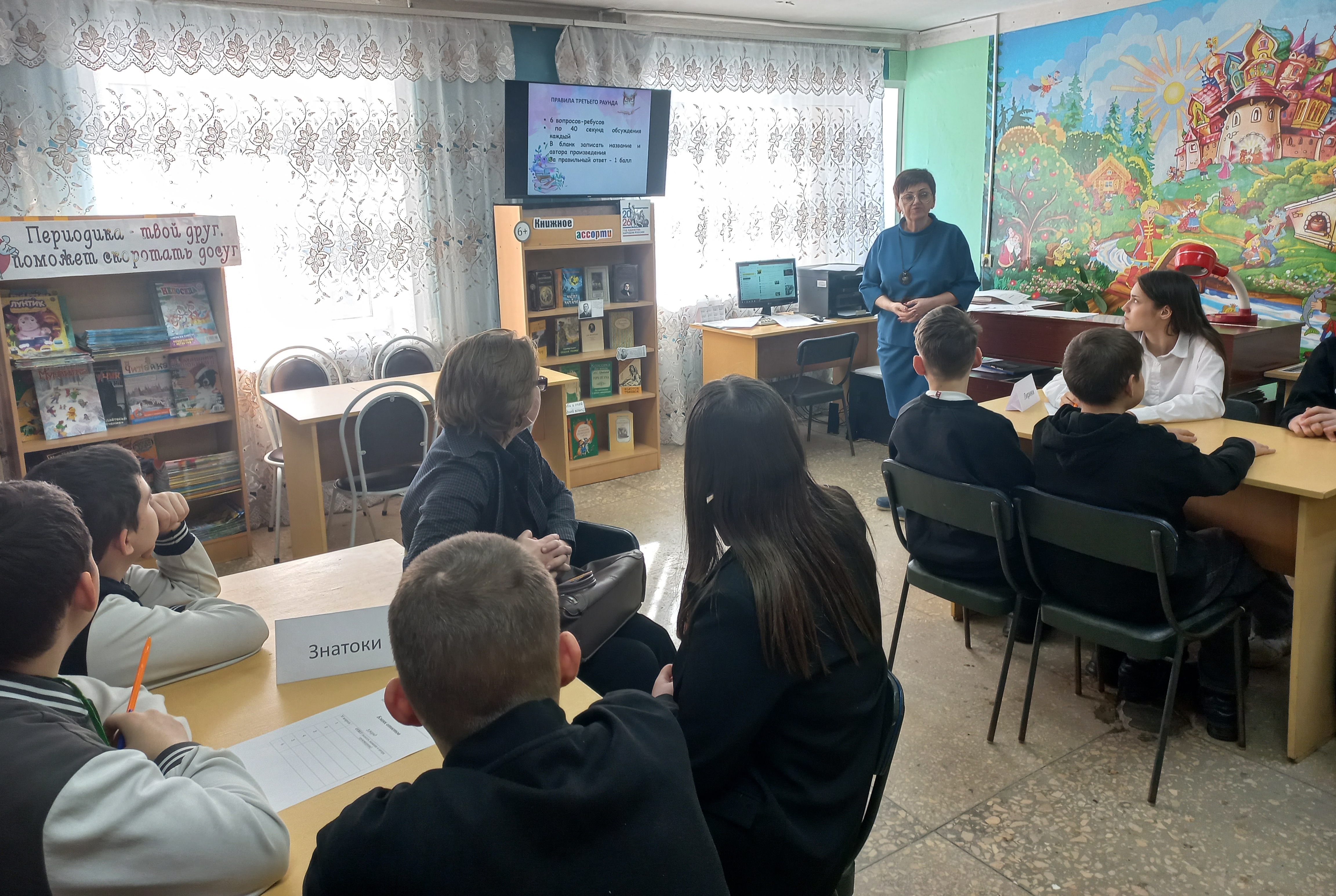 В детской библиотеке №9 состоялось яркое мероприятие – квиз «Книжное ассорти». Игра собрала любителей литературы из МАОУ СОШ №11 и МАОУ СОШ № 18 и стала настоящим праздником для ценителей книг. Участники прошли 6 раундов, отвечая на вопросы о книгах и авторах, разгадывая литературные ребусы, определяя произведения по монологам из фильмов. Ребята отметили, что квиз не только проверил знания, но и помог открыть книги в новом формате. Библиотека благодарит всех участников и приглашает на следующие мероприятия. Следите за анонсами – впереди ещё больше книжных приключений.