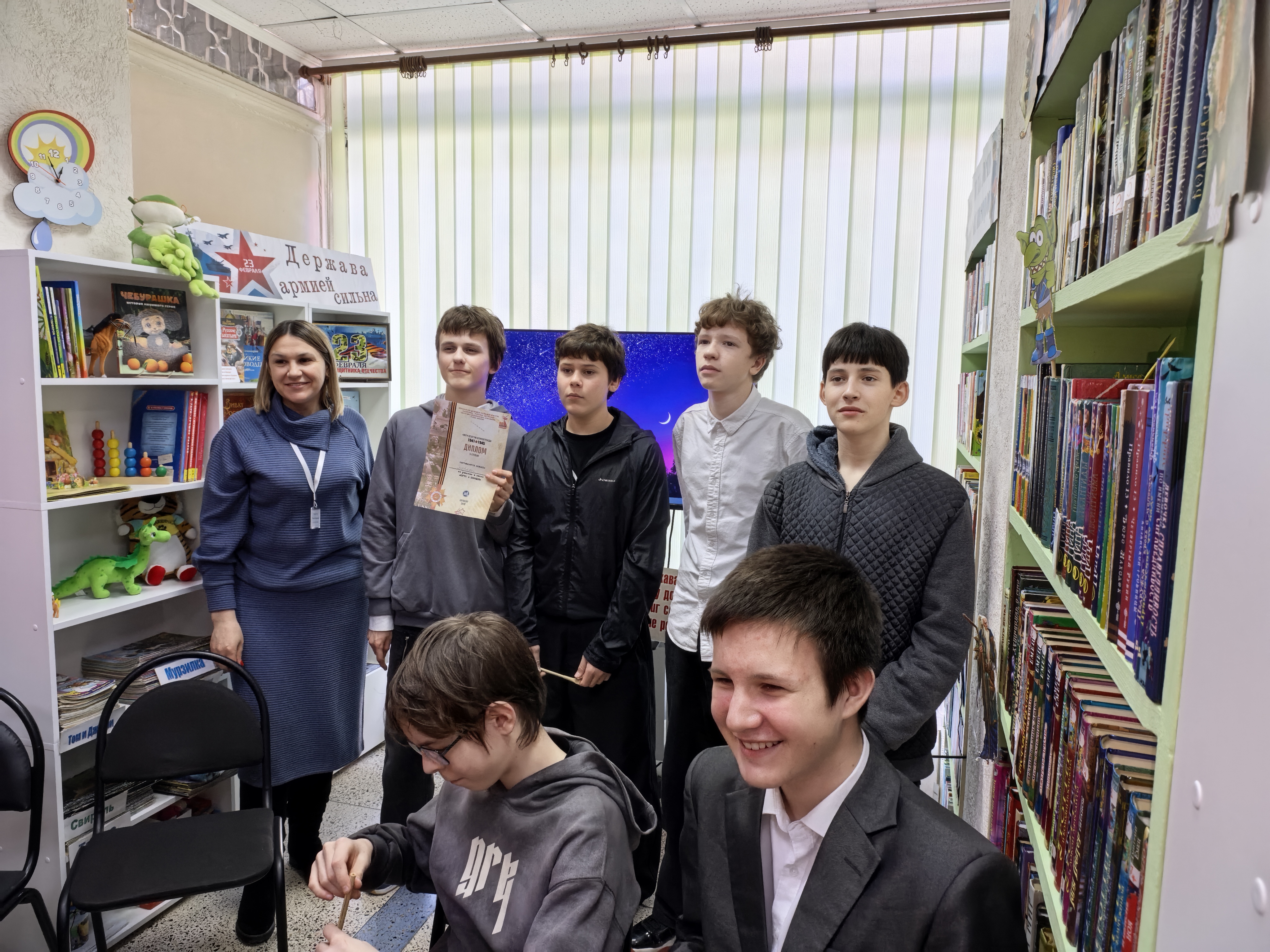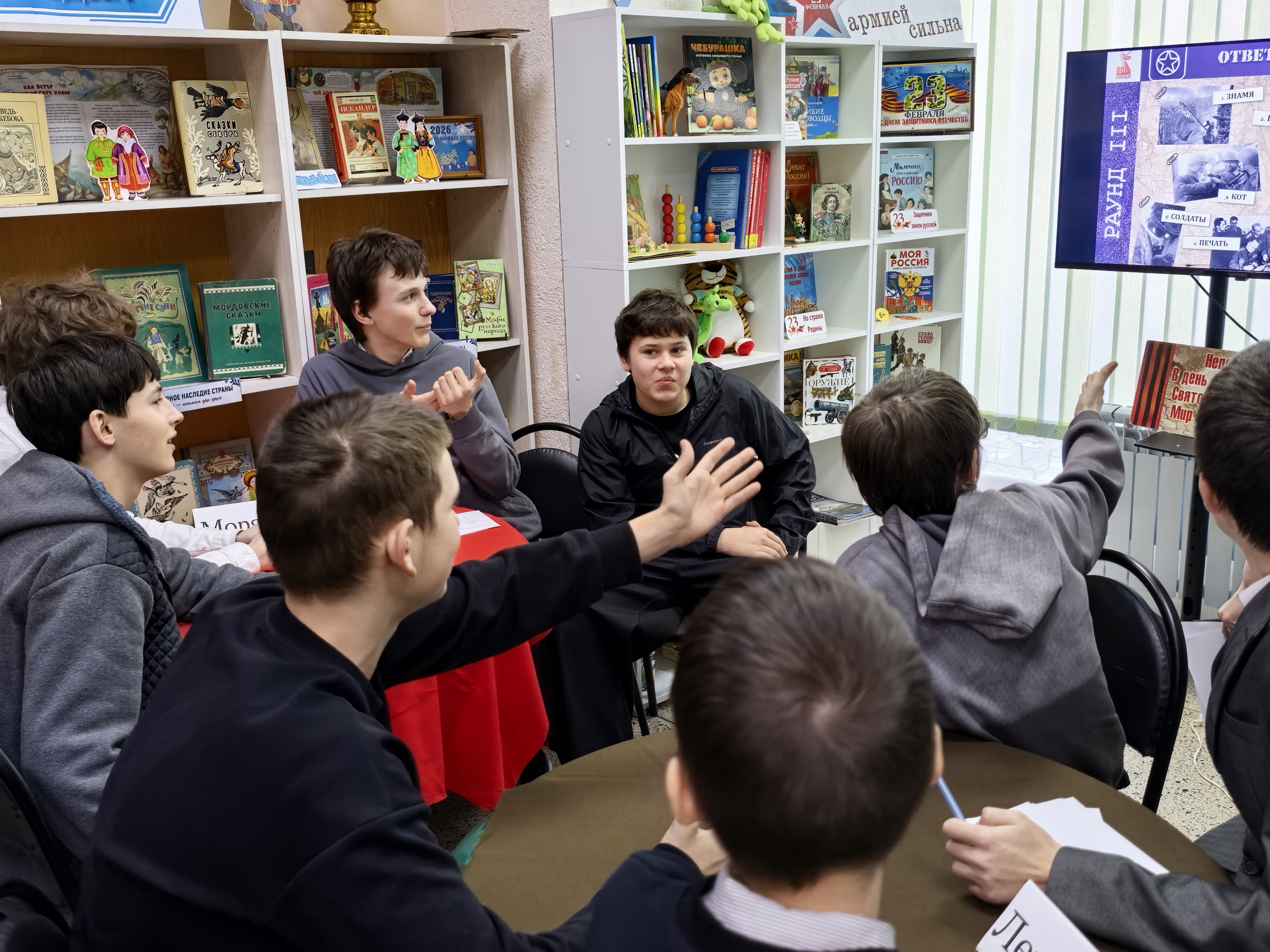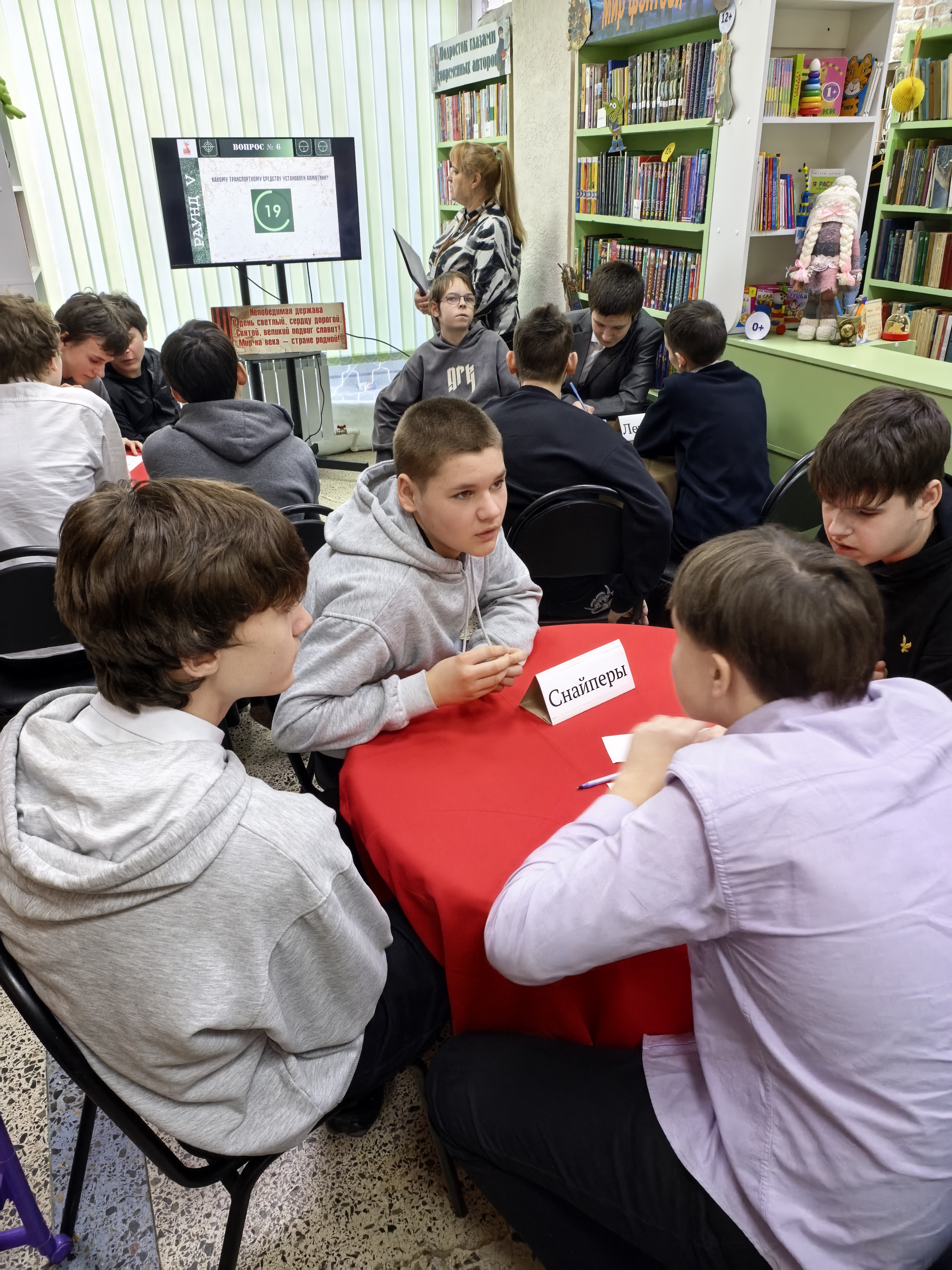 Великая Отечественная война — это одно из самых значимых событий в истории России и мира. Это была битва за свободу, выживание и защиту родной земли от фашистской агрессии. Война, продолжавшаяся с 1941 по 1945 годы, принесла огромные потери и стала испытанием для всего советского народа. В библиотеке была организована интеллектуальная битва — квиз «Путь к Победе», посвященный Великой Отечественной войне. Это мероприятие стало настоящим подарком для учащихся МАОУ СОШ3, предоставив им уникальную возможность погрузиться в исторические события того времени и проверить свои знания о Великой Отечественной войне. Сам квиз состоял из шести захватывающих раундов, каждый из которых представлял собой уникальное путешествие в исторические реалии Великой Отечественной войны. Участники продемонстрировали свои знания как в общих вопросах истории, так и в деталях, что сделало игру особенно интересной и познавательной. После напряженной и увлекательной борьбы, по итогам всех шести раундов, первое место с большим отрывом завоевала команда «Снайперы», которая продемонстрировала глубокие познания в военном деле и истории. Второе место заняла команда «Танкисты», а третье место достались команде «Летчики». Каждая команда проявила не только эрудицию, но и командный дух, что сделало соревнование еще более увлекательным.