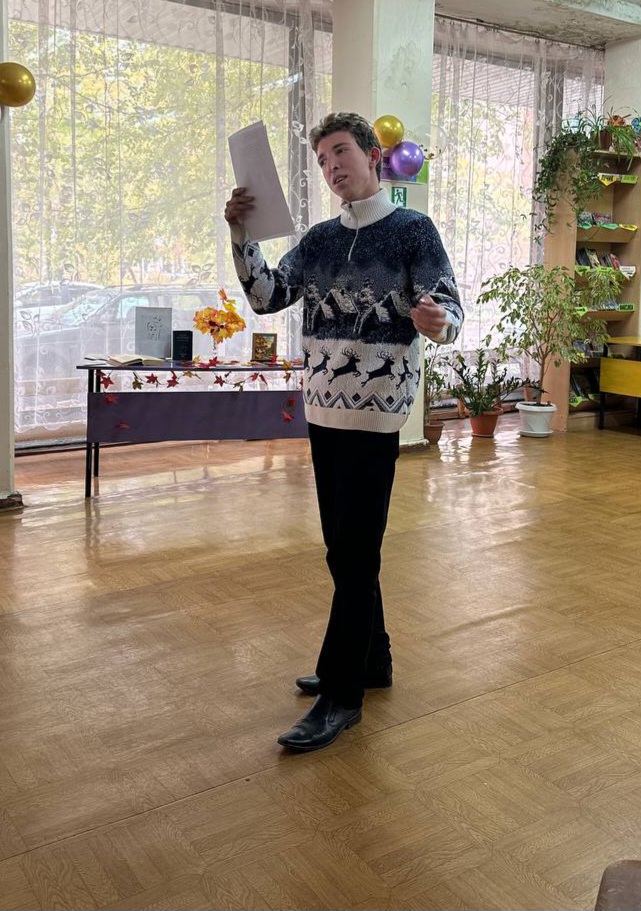 В городской библиотеке №1 им. П.А. Столыпина в рамках библиотечного клуба "Диалог" состоялось мероприятие литературная гостиная "Без России меня бы не было...", посвященное 130-летию со дня рождения великого поэта С.А. Есенина. Его творчество известно своей любовью к Родине и тонким лиризмом. Библиотекарь познакомила всех присутствующих в зале с биографией поэта, в которую вошло много новых и интересных фактов о его жизни и творческом пути. Мероприятие сопровождалось слайдами, видеороликами и фотографиями о великом поэте. Поэзия Есенина очень мелодична, и многие композиторы положили его стихи на музыку. По мотивам его произведений написано много романсов и песен, которые также исполнялись. Гостями мероприятия стали Николай и Мария Митрофановы — семейный дуэт, исполняющий бардовскую музыку, Сергей Должиков — знаток, почитатель и исследователь жизни и творчества С. Есенина, а также поэты из молодежного клуба "ЯВЪ" Никита Смирнов, Владимир Казанцев, Родион Тарнакин.