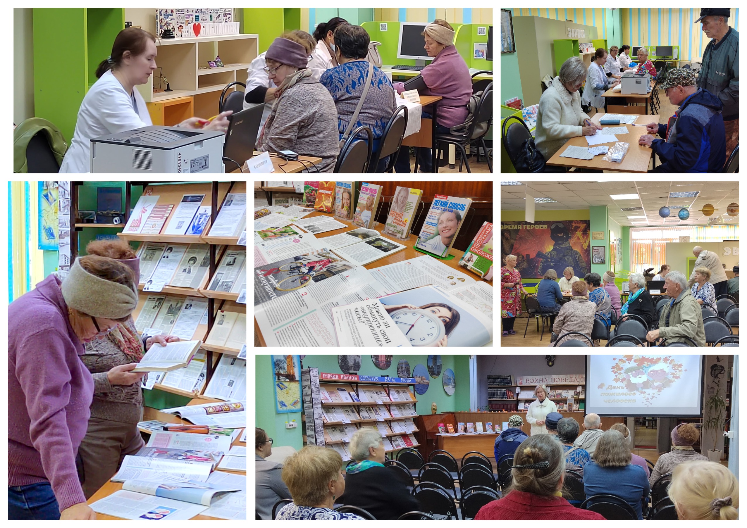 1 октября в городской центральной библиотеке состоялся комплекс мероприятий, посвященных Дню пожилого человека. Беседу и «Островок здоровья» для посетителей организовали сотрудники Саратовского областного центра общественного здоровья и профилактики. В первой части мероприятия врач-методист Ольга Николаевна Пивненко побеседовала с гостями о том, как поддерживать здоровье в пожилом возрасте, о балансе в питании, выборе продуктов. Также специалист ответил на интересующие гостей вопросы. После беседы посетители смогли проверить показатели здоровья - узнать уровень глюкозы, насыщения крови кислородом, измерить давление и ритм сердца. Каждый гость получил от сотрудников центра индивидуальную консультацию. В зале действовала выставка «Добрые советы о здоровье», на которой желающие могли найти интересные и полезные материалы о здоровом образе жизни, видах активности, питании и биоритмах. Выражаем благодарность сотрудникам Центра здоровья за сотрудничество. А наших гостей и всех читателей библиотеки почтенного возраста искренне поздравляем с праздником, желаем крепкого здоровья и долгих лет жизни!