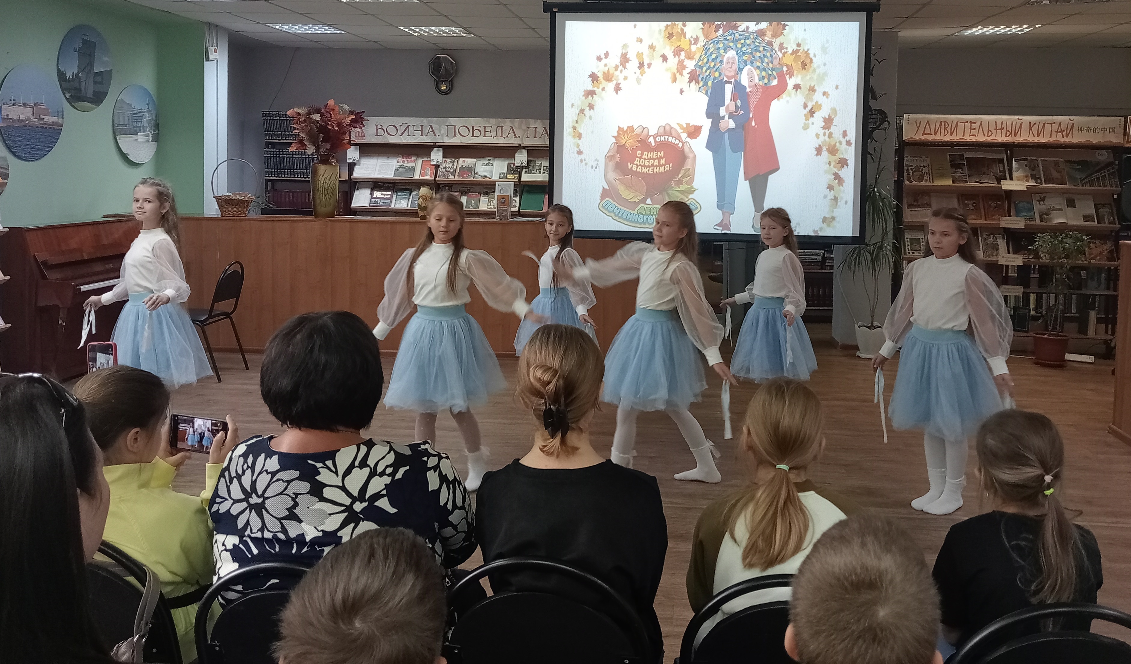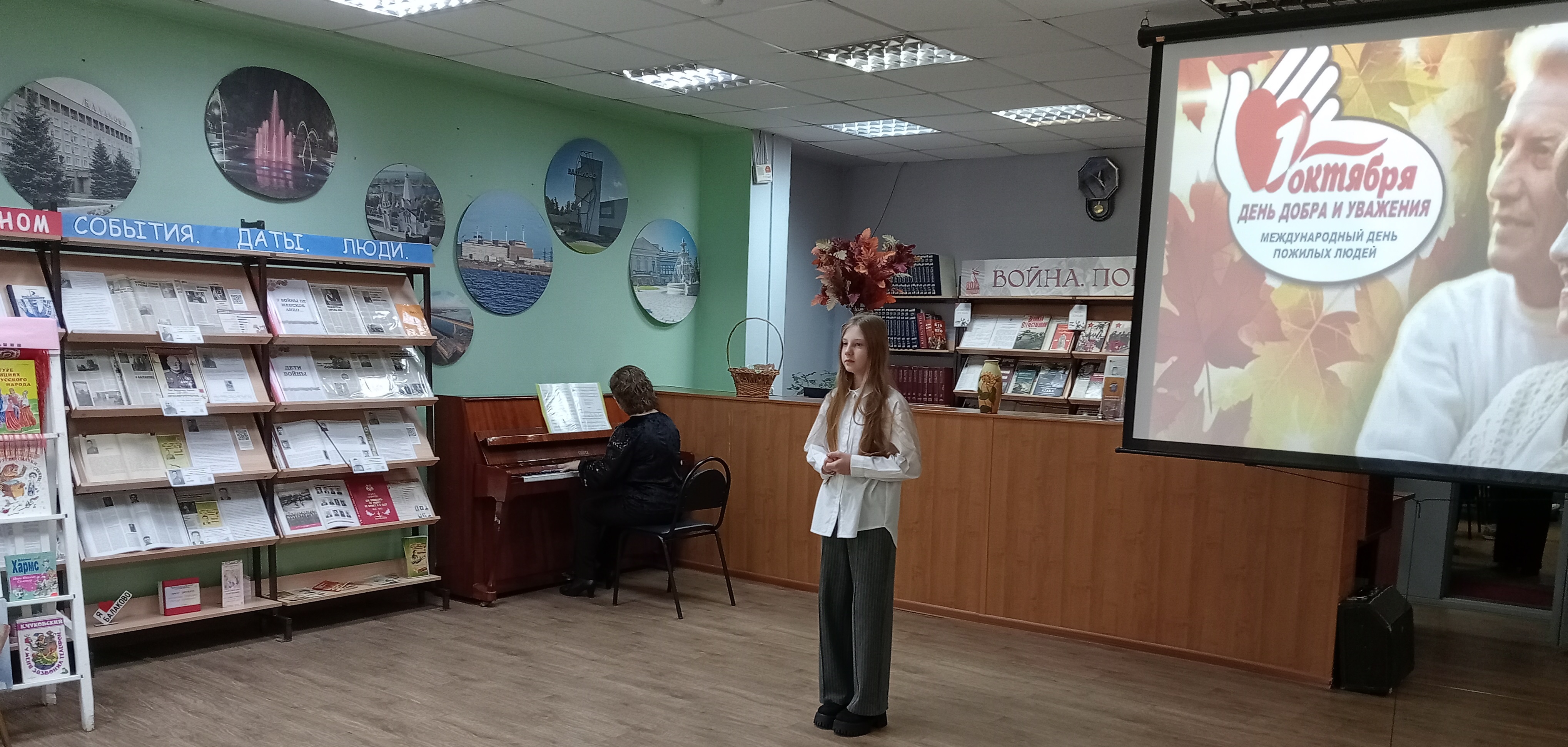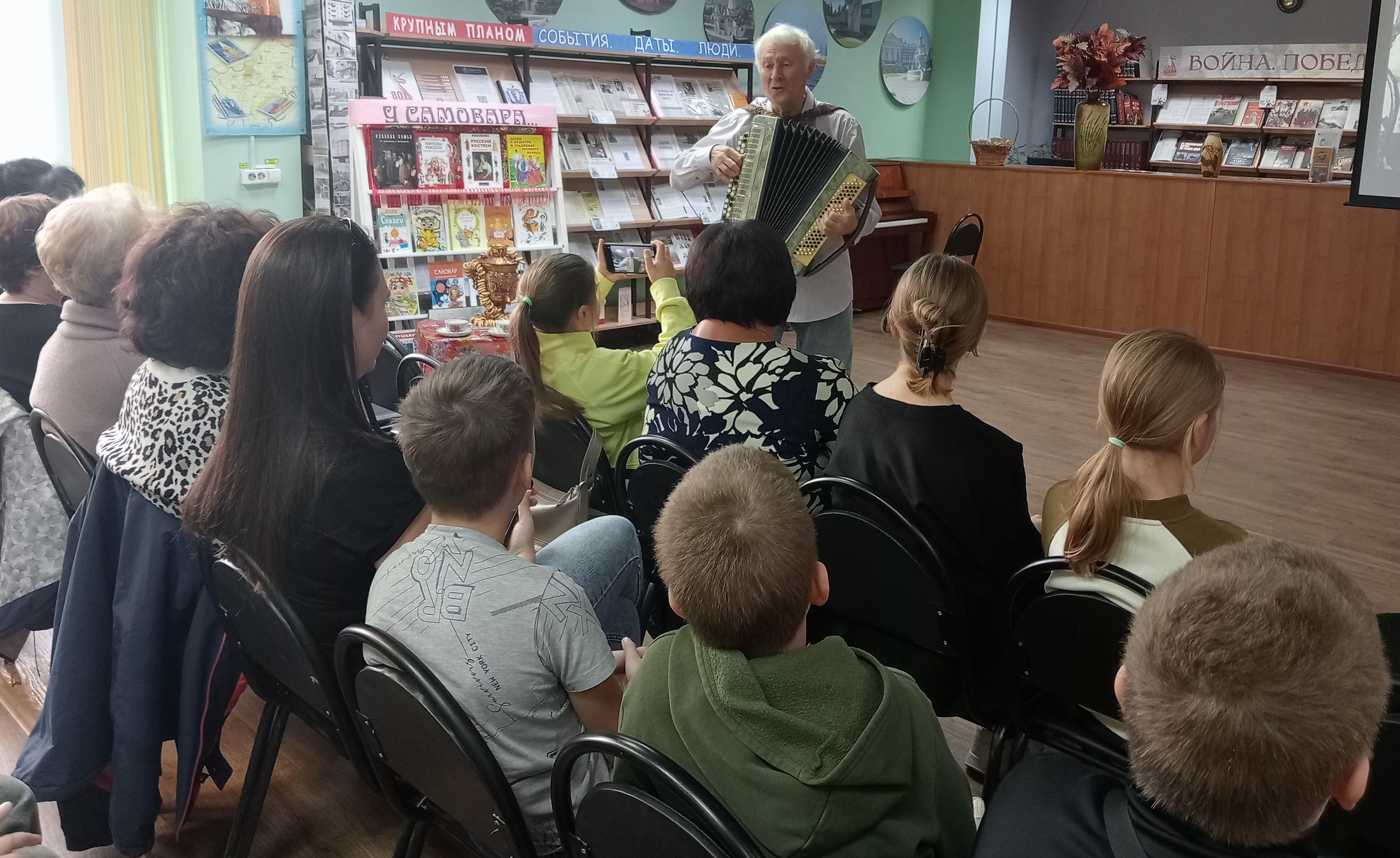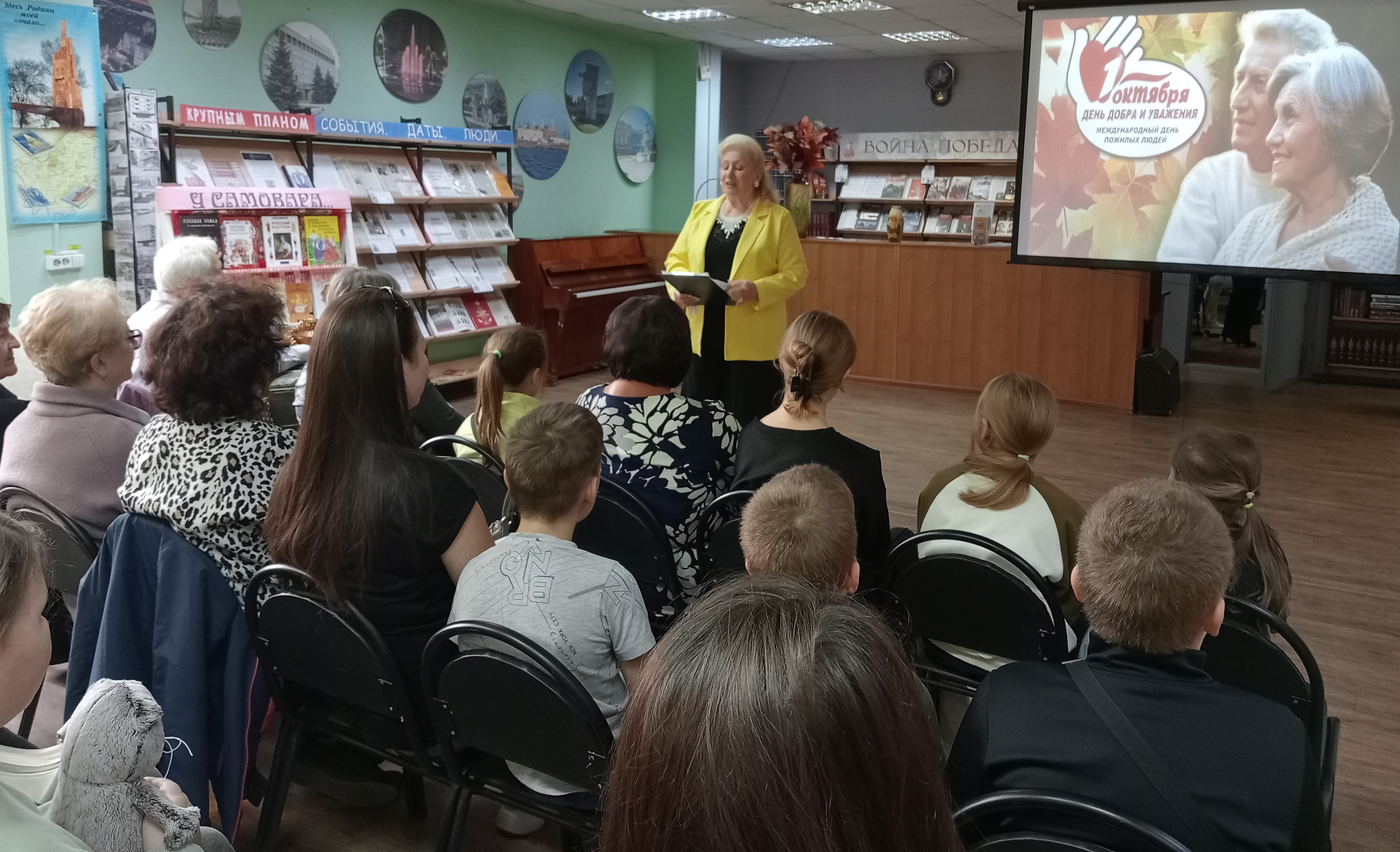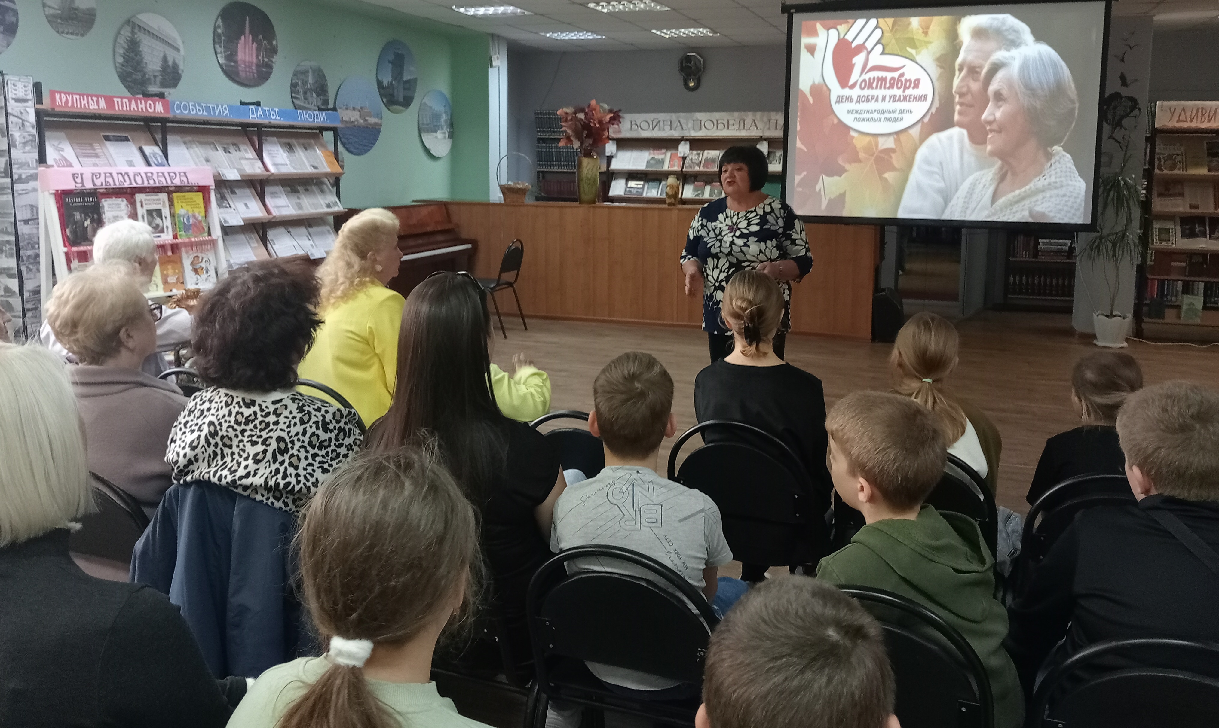 Ко дню пожилого человека, в городской центральной библиотеке прошла встреча поколений, на которой присутствовали юные читатели детского отдела, их родители, дедушки и бабушки. Среди гостей были и те, которые активно участвуют во многих библиотечных мероприятиях по воспитанию подрастающего поколения: Гриднева Нина Ивановна -бывшая актриса БДТ имени Е. Лебедева, Гущина Нина Николаевна, Белова Анна Петровна - ветераны библиотечного труда, Романенкова Светлана Алексеевна-преподаватель театрального отделения ДШИ №4, Колодяжная Вера Анатольевна- поэт, прозаик, сказочница ( которая приехала в наш город из Донецка), Шевченко Евгений Васильевич –ветеран вооруженных сил, ветеран Балаковской АЭС, поэт, баянист, задушевно исполнивший замечательную песню про город Балаково. Гости тепло общались с ребятами, рассказали о себе, о своем вкладе в развитие нашего города, об увлечениях, о своих внуках. Учащиеся школы искусств №2 им. И.Я. Паницкого подготовили для ветеранов праздничный концерт, в котором прозвучали классические произведения, задорные и лирические песни и танцы. Перед чаепитием библиотекарь детского отдела рассказала присутствующим о русском самоваре, традиции чаепития на Руси, традициях семейных посиделок у самовара. Закончилась встреча за чашкой чая, с задушевными песнями.