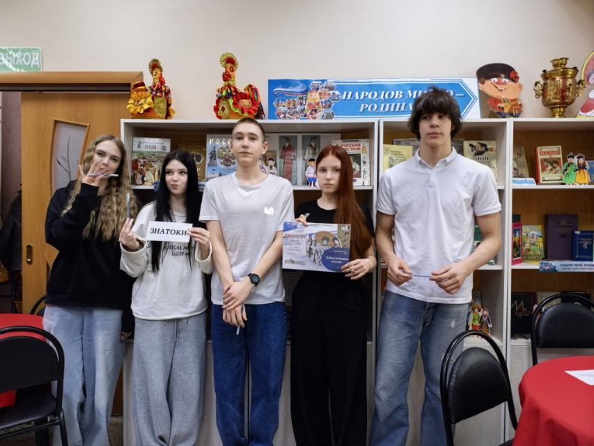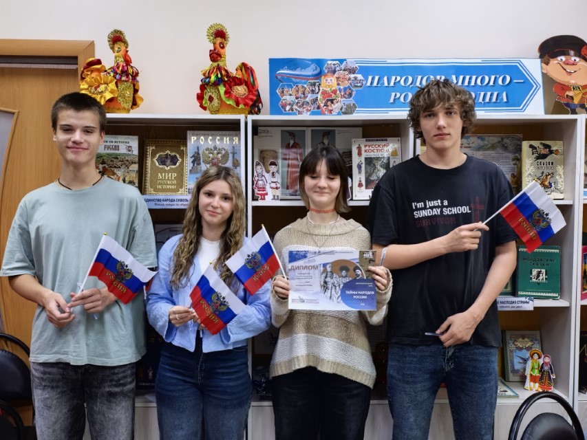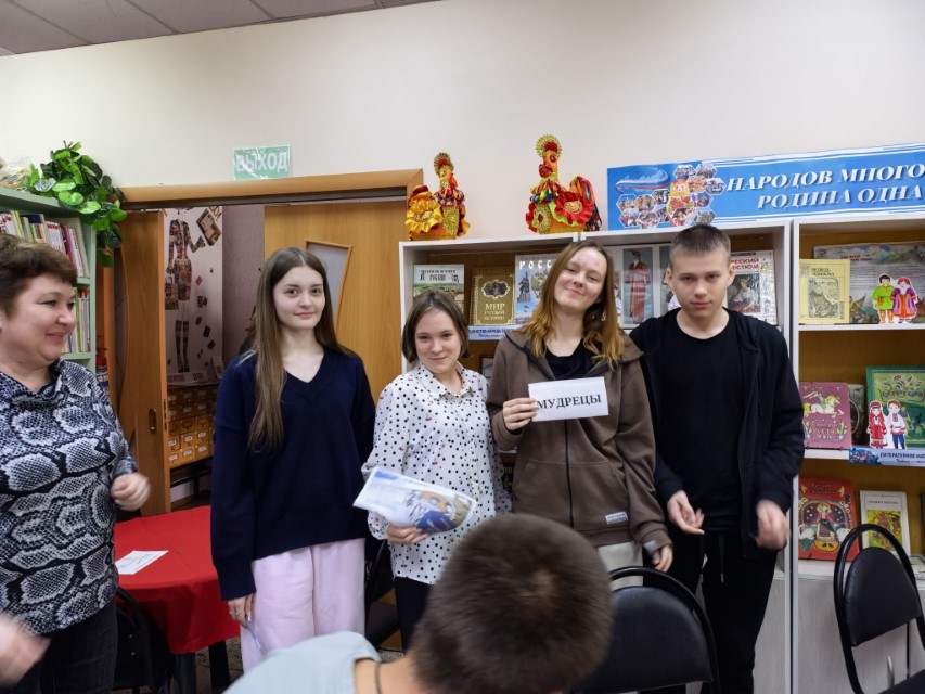 В рамках Года единства народов России была проведена интеллектуальная игра «Тайны народов России». С читателями провели беседу «России многоликая страна». К мероприятию была оформлена выставка «Народов много - Родина одна». На выставке были представлены книги, которые помогут познакомиться с российскими календарными, православными и семейными праздниками, сопровождающие их традиционные обряды, приметы и поверья. Учащихся МАОУ СОШ №3 познакомили с правилами интеллектуальной игры «Тайны народов России». Участвовали команды «Мудрецы», «Знатоки», «Эрудиты». Лучший результат показала команда «Эрудиты». Второе место у команды «Знатоки», третье место заняла команда «Мудрецы».