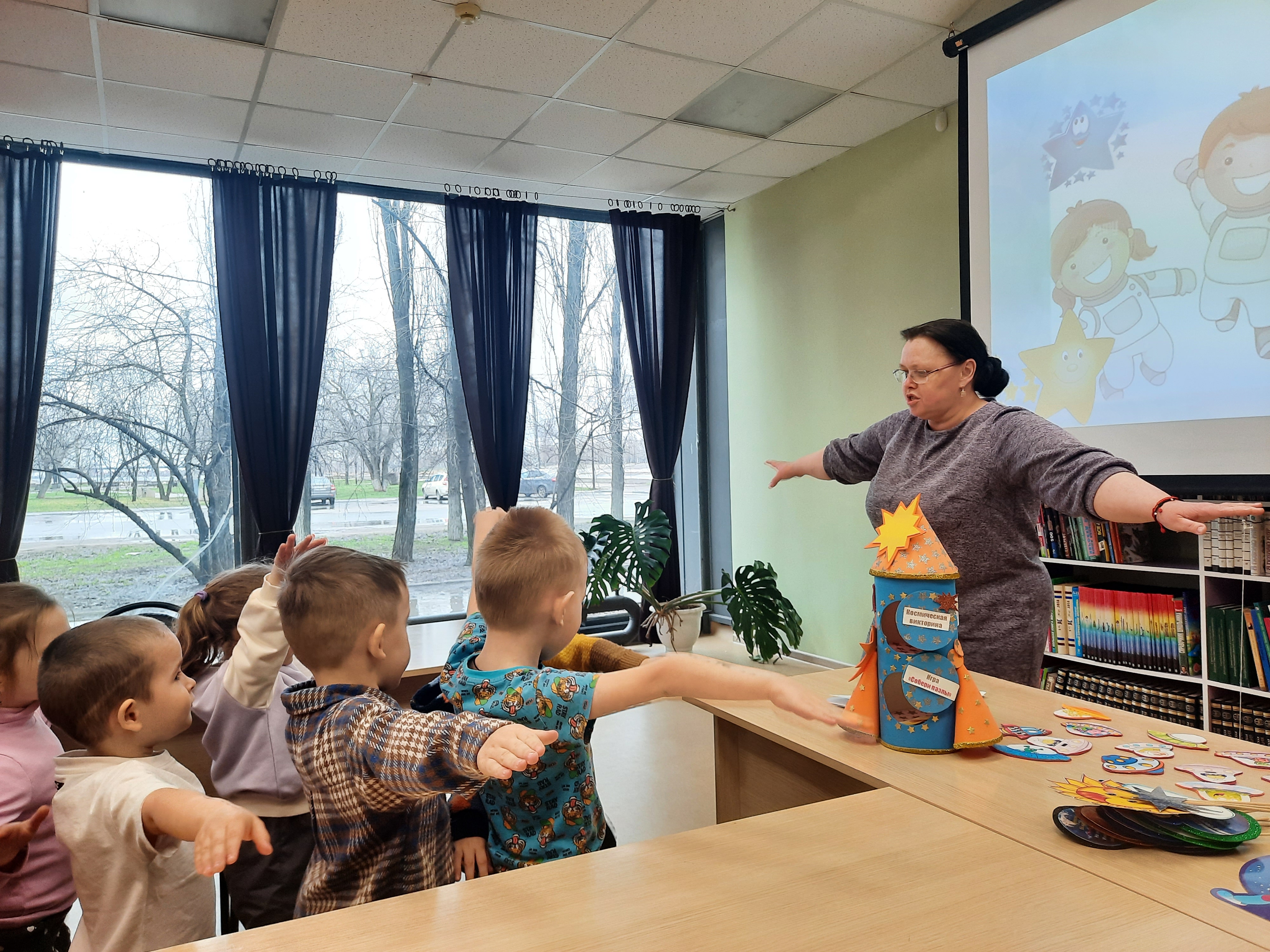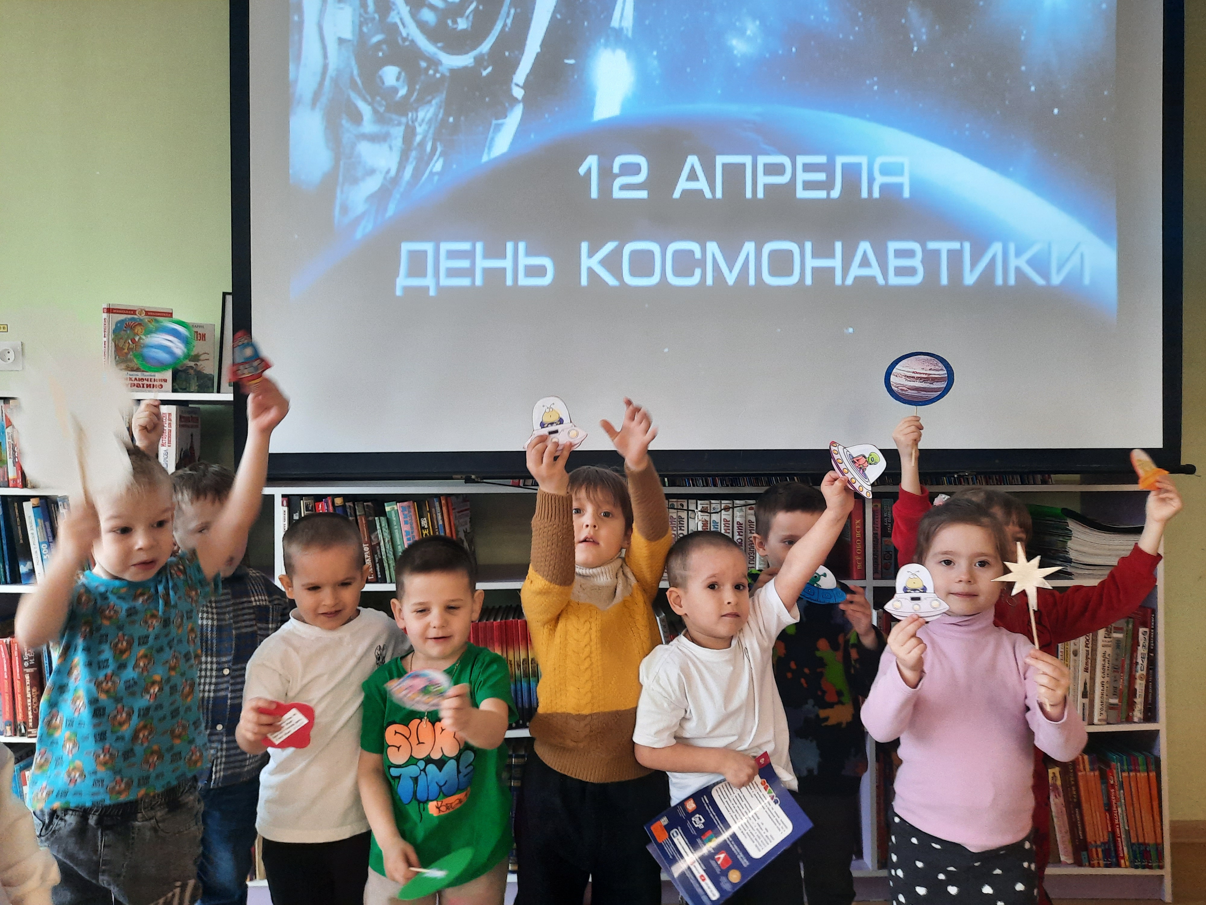 В преддверии Дня космонавтики в библиотеке прошел космический праздник для воспитанников детского сада! Вместе с ребятами мы отправились в виртуальное путешествие по галактике: изучили звёздное небо, узнали, чем питаются космонавты, отгадали загадки про космос и ракеты, и даже "побывали" на Луне. Юные исследователи отлично справились со всеми испытаниями и доказали, что готовы к полетам.