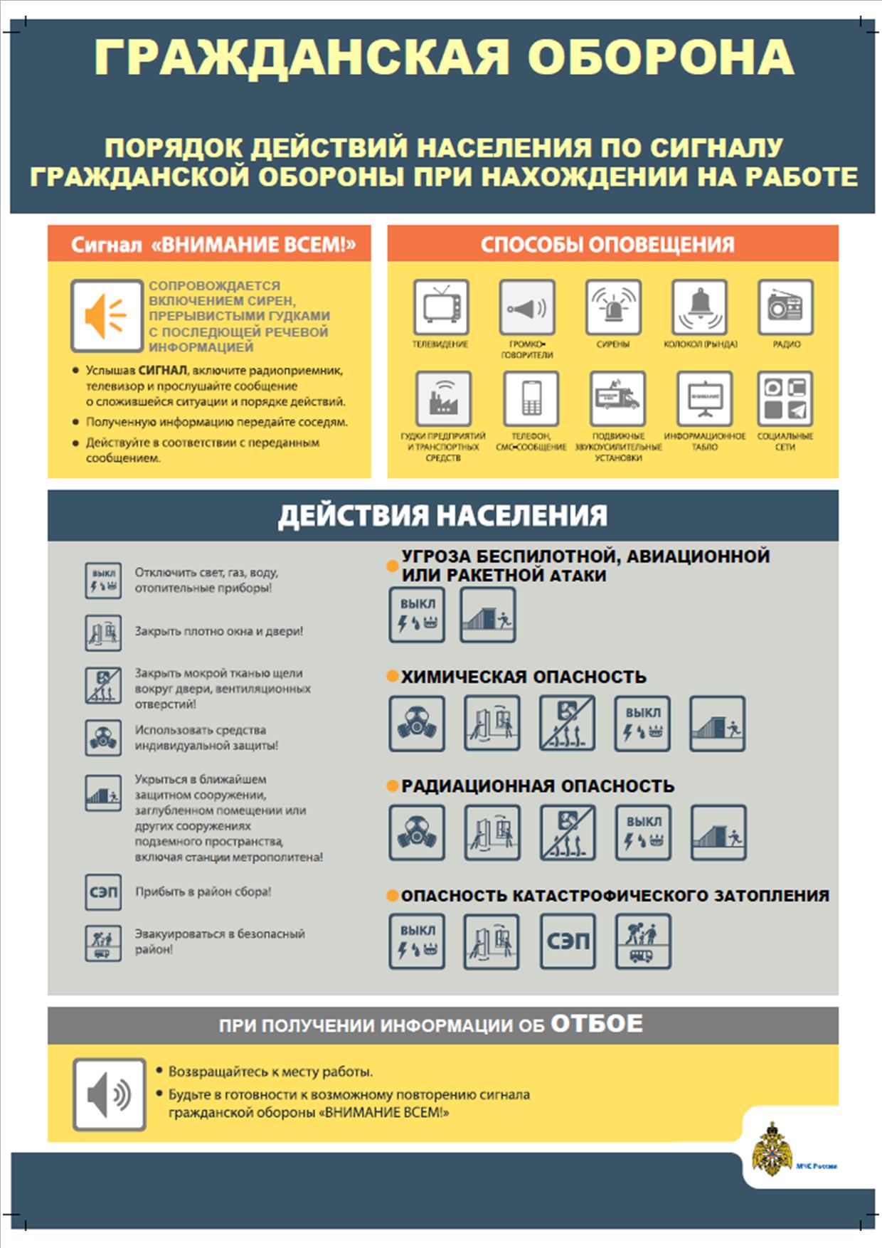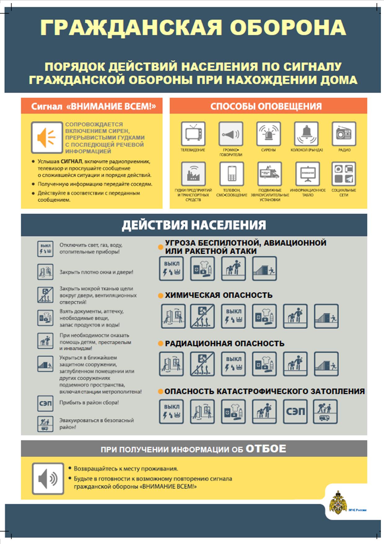 Главным управлением Министерства Российской Федерации по делам гражданской обороны, чрезвычайным ситуациям и ликвидации последствий стихийных бедствий по Саратовской области разработаны памятки по действиям при возникновении опасности беспилотной, авиационной или ракетной атаки, катастрофического затопления, а также радиационного (химического) заражения.