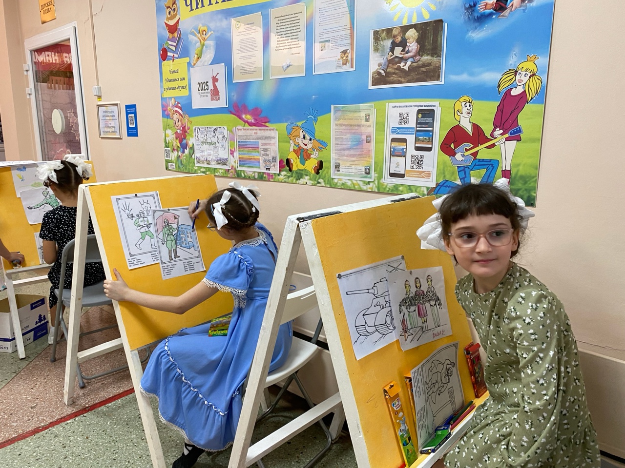 Зона мастер-классов предложила гостям Библионочи изготовить тематические сувениры и открытки, арт-зона привлекла внимание юных гостей акции возможностью изобразить военную технику, оружие и обмундирование времён Великой Отечественной войны, эпизоды военных сражений.