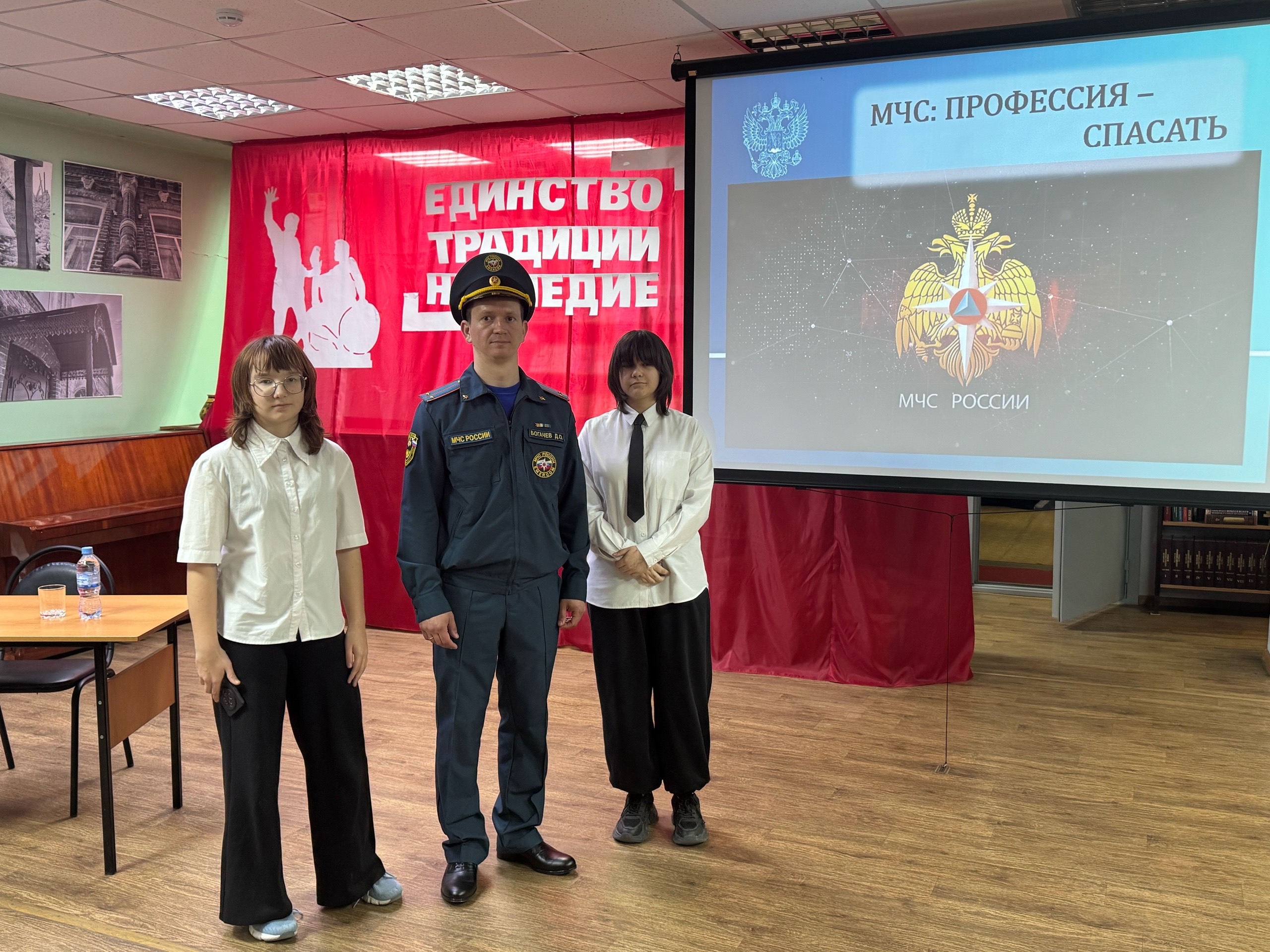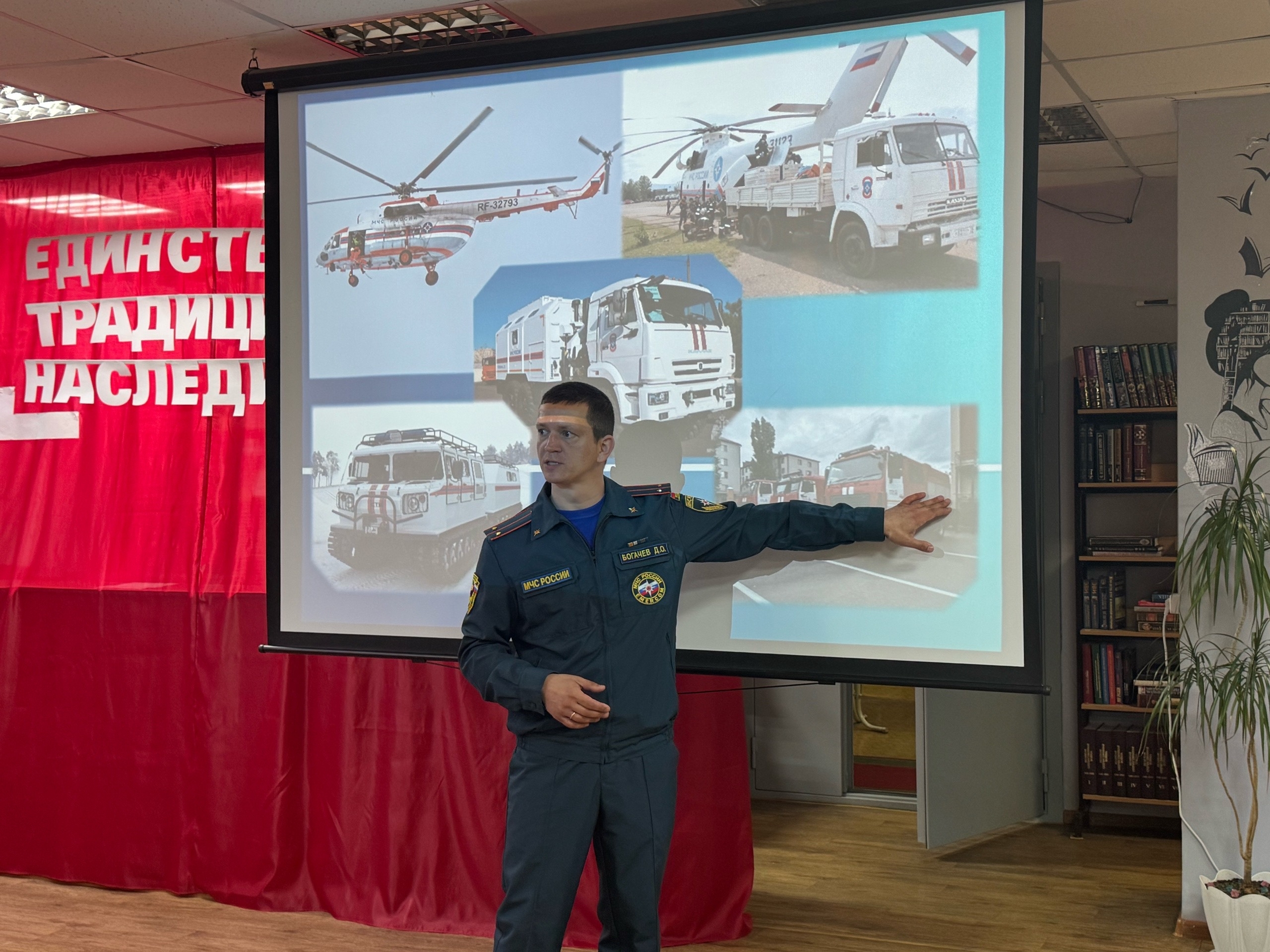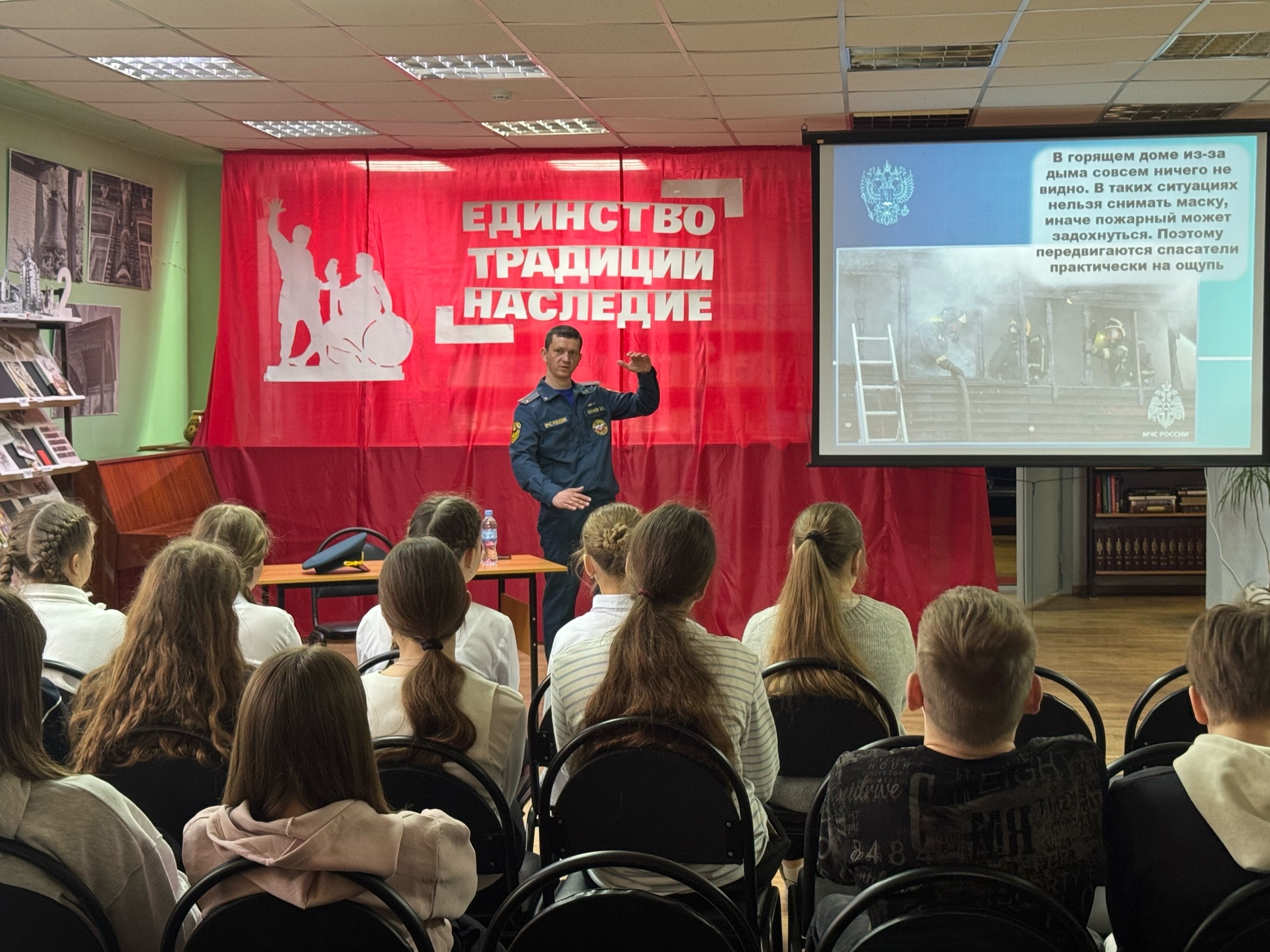 Сегодня в городской центральной библиотеке состоялась познавательная встреча учеников Лицея № 1 с лейтенантом внутренней службы, инспектором ОО СПиПТ Денисом Олеговичем Богачёвым. В начале мероприятия библиотекарь познакомил ребят с деятельностью Министерства Российской Федерации по делам гражданской обороны, чрезвычайным ситуациям и ликвидации последствий стихийных бедствий (МЧС России): рассказал об истории создания ведомства и его ключевых подразделениях. Особое внимание было уделено Федеральной противопожарной службе (ФПС) — её задачам, структуре и ежедневной работе. Денис Олегович поделился личным опытом службы в пожарной части, наглядно объяснил алгоритм действий при обнаружении пожара и провёл практическое занятие: школьники отработали первые шаги в экстренной ситуации. Кроме того, гость поделился увлекательными фактами о противопожарной службе, которые вызвали живой интерес у аудитории. В завершение встречи Денис Олегович пригласил ребят на экскурсию в пожарную часть и напомнил о важности ответственного и добропорядочного поведения — как в повседневной жизни, так и в вопросах безопасности.