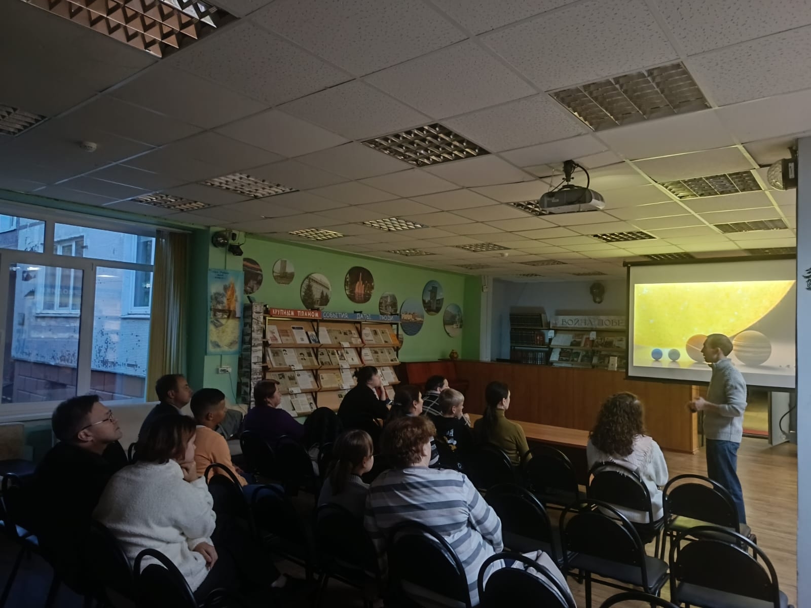 24 октября в городской центральной библиотеки состоялась встреча сообщества любителей астрономии. Лектор и основатель сообщества Александр Попов рассказал об объектах Солнечной системы, о больших и малых планетах, раскрыл тайну того, откуда прилетают кометы. Также участники узнали немаловажную информацию о том, как наша звезда Солнце защищает Землю от губительных факторов космоса. По окончании встречи слушатели задали вопросы выступающему, совместно обсудили интересные моменты лекции. Следующая встреча сообщества планируется 7 ноября. Ждем всех желающих!