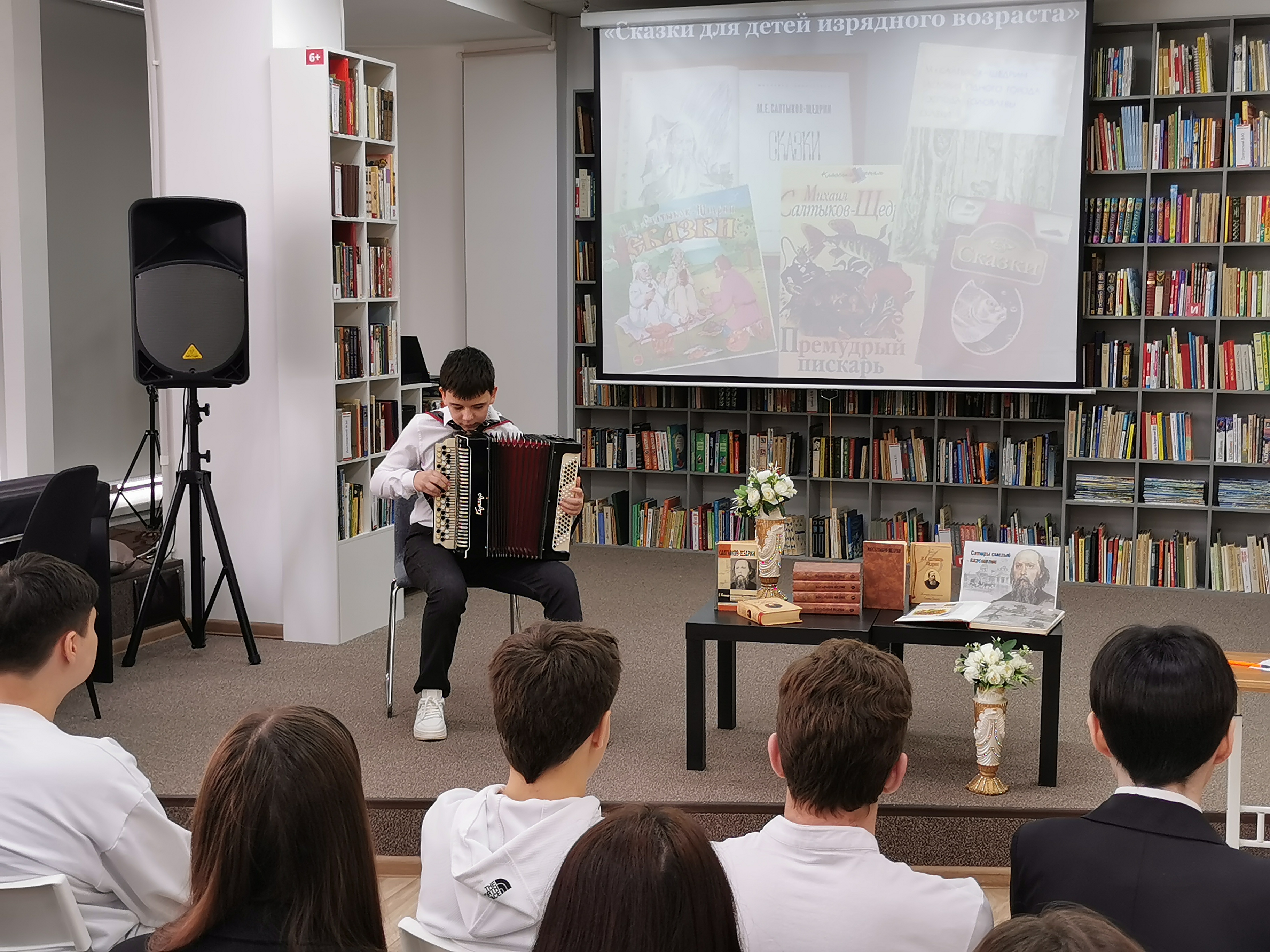 17 марта центральная детская библиотека распахнула двери для всех, кто хотел поближе познакомиться с гением русской сатиры – Михаилом Салтыковым-Щедриным. В честь его 200-летнего юбилея мы провели увлекательную встречу, где студенты смогли погрузиться в удивительную биографию писателя, узнать о его жизни и творчестве множество любопытных фактов. Музыкальное сопровождение вечера создавал юный талант Григорий Колесов из Детской музыкальной школы №1 (преподаватель - Г.А. Кудряшова). Особым украшением встречи стало художественное чтение сказки «Премудрый пескарь» в исполнении Галины Моргуновой – прямо как будто сам Пескарь перед нами сидел! Это было настоящее погружение в мир сатиры и мудрости. А для тех, кто захотел продолжить знакомство с творчеством великого писателя, была подготовлена выставка книг «Сатиры смелый властелин».