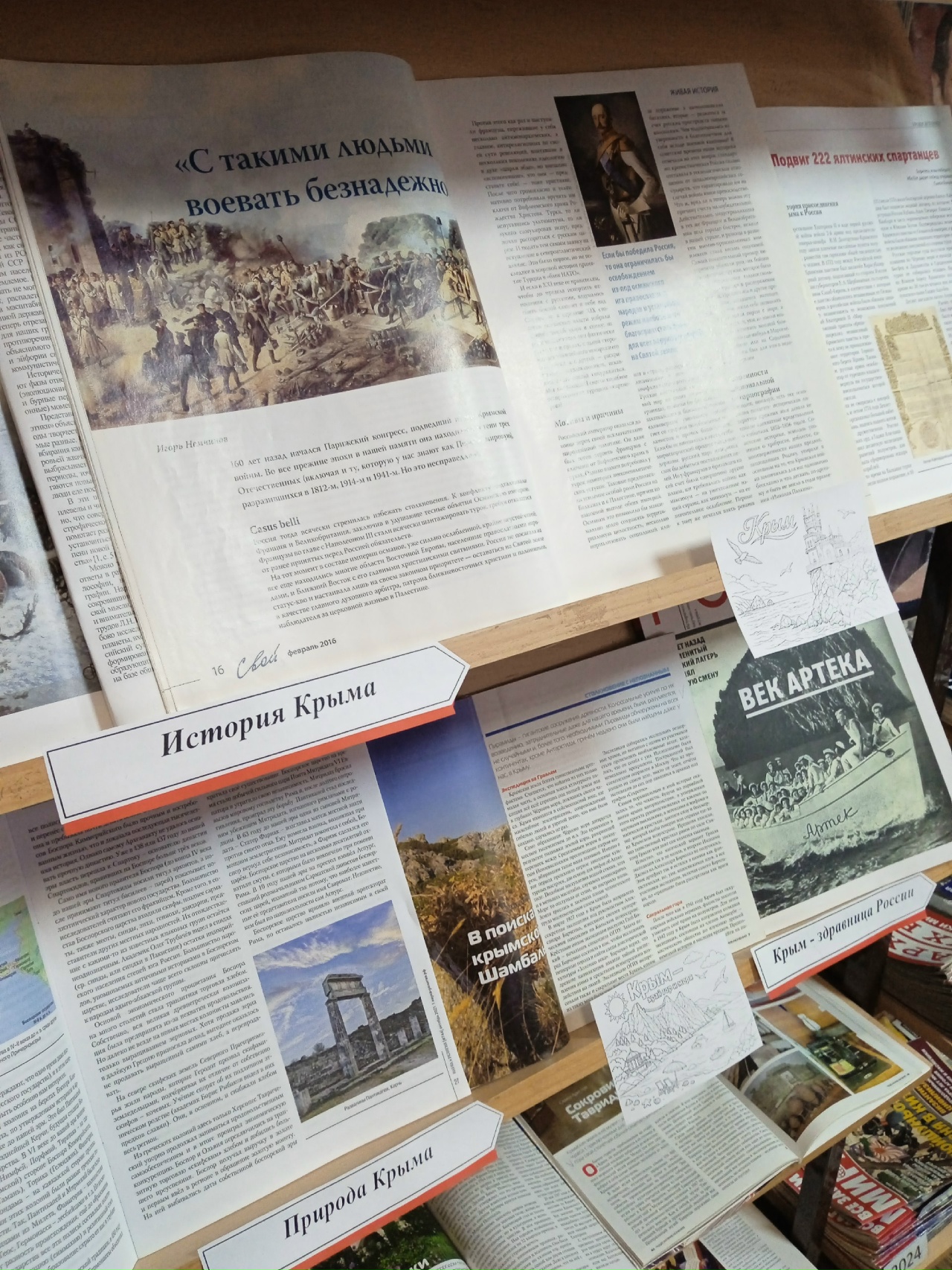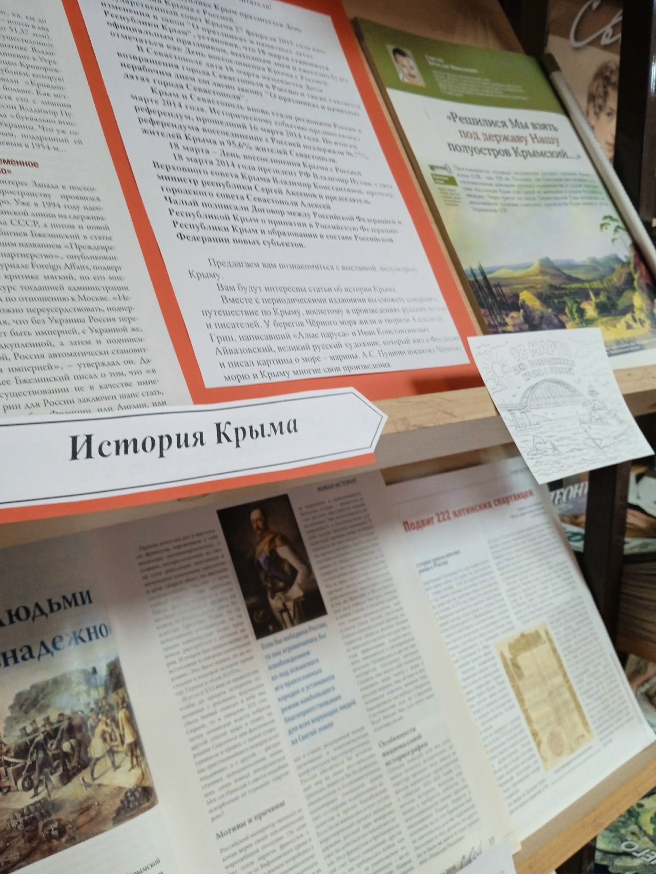 18 марта 2026 года исполняется двенадцать лет с момента воссоединения Крыма и Севастополя с Россией. Эта знаменательная дата стала важным событием в истории нашей страны. В честь этого события в зале информации городской центральной библиотеки открылась выставка «Крым – частичка России». Она посвящена общей исторической судьбе народов Крыма и России, тому, как Крым сквозь века связывал разные народы, культуры, государства и цивилизации. На выставке представлены периодические издания, подробно рассказывающие о полуострове: его географическом положении и ландшафте, уникальной природе и климате, населении и экономике, богатой национальной кухне и многочисленных достопримечательностях Республики Крым. Особое внимание уделено тому, как наши соотечественники героически сражались здесь на суше и на море в страшные годы войн за Отечество. Крым во все времена притягивал творческих людей. Сюда приезжали поэты, писатели, художники. Для некоторых прозаиков и поэтов полуостров стал домом. Публикации, представленные на выставке, наглядно раскрывают историю этой важной для России и Крыма даты. Выставка будет работать с 16 по 20 марта.