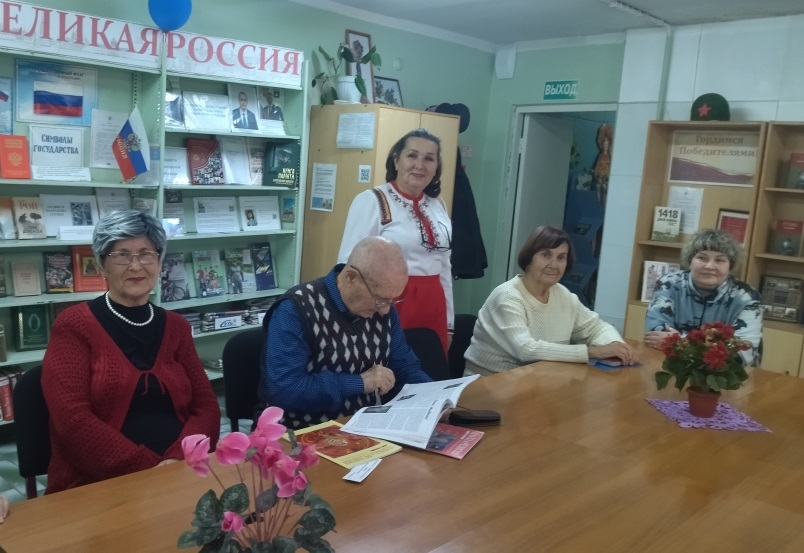 В преддверии Дня толерантности участники клуба "Дубравушка" совершили заочное путешествие "Искусство жить вместе". Проводником в замечательную республику Чувашия была Ильина Лидия Владимировна, руководитель сектора чувашских коллективов ЦКР. Лидия Владимировна рассказала историю этого народа, его традиции, особое внимание было уделено национальному женскому костюму. Каждый мог примерить и почувствовать всю красоту головного убора. Участники услышали стихотворение чувашского поэта и мудрые высказывания педагога-просветителя Ивана Яковлевича Яковлева о том, что дружба между русским и чувашским народом главное условие взаимного развития. Участники мероприятия благодарили Лидию Владимировну за интересную беседу. В заключение балаковский поэт Людмила Пшеничная прочитала поэму "Аисты", посвященную сохранению мира.