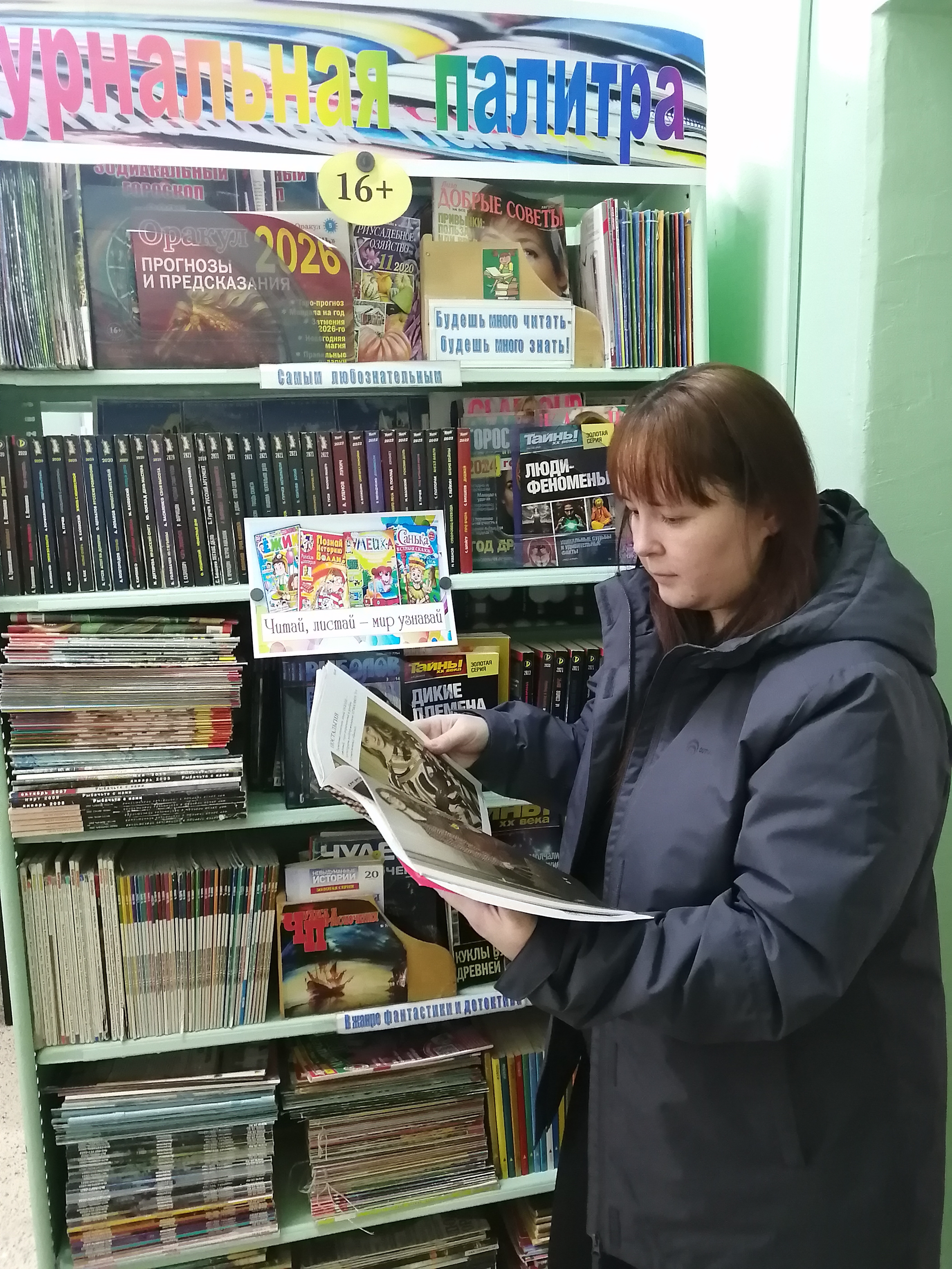 Большую роль в привлечении читателей в библиотеку играет периодическая печать. Для читателя всё важнее становятся оперативность, новизна и своевременность получения информации. Кроме того, периодика служит прекрасным средством приобщения к профессиональному чтению. В библиотеке была организована выставка периодических изданий «Журнальная палитра». На ней посетители могли ознакомиться с журналами на разнообразные темы. Библиотекари провели обзор статей, в которых были представлены наиболее интересные факты, данные и события. Для молодежной аудитории были устроены викторина, посвященная Дню Российской печати, мини-конкурсы «Что мы знаем о периодике» и «Чтение по диагонали». Участники этих конкурсов отвечали на вопросы о представленных периодических изданиях и в течение короткого времени находили статьи, содержащие актуальную и полезную информацию.